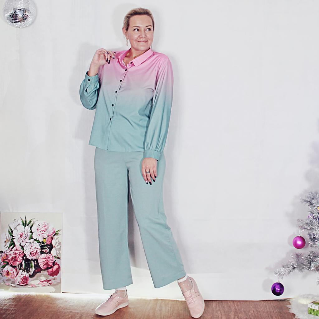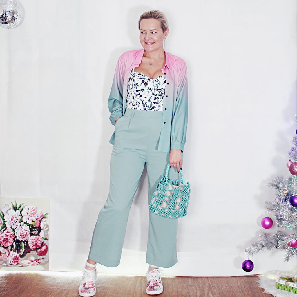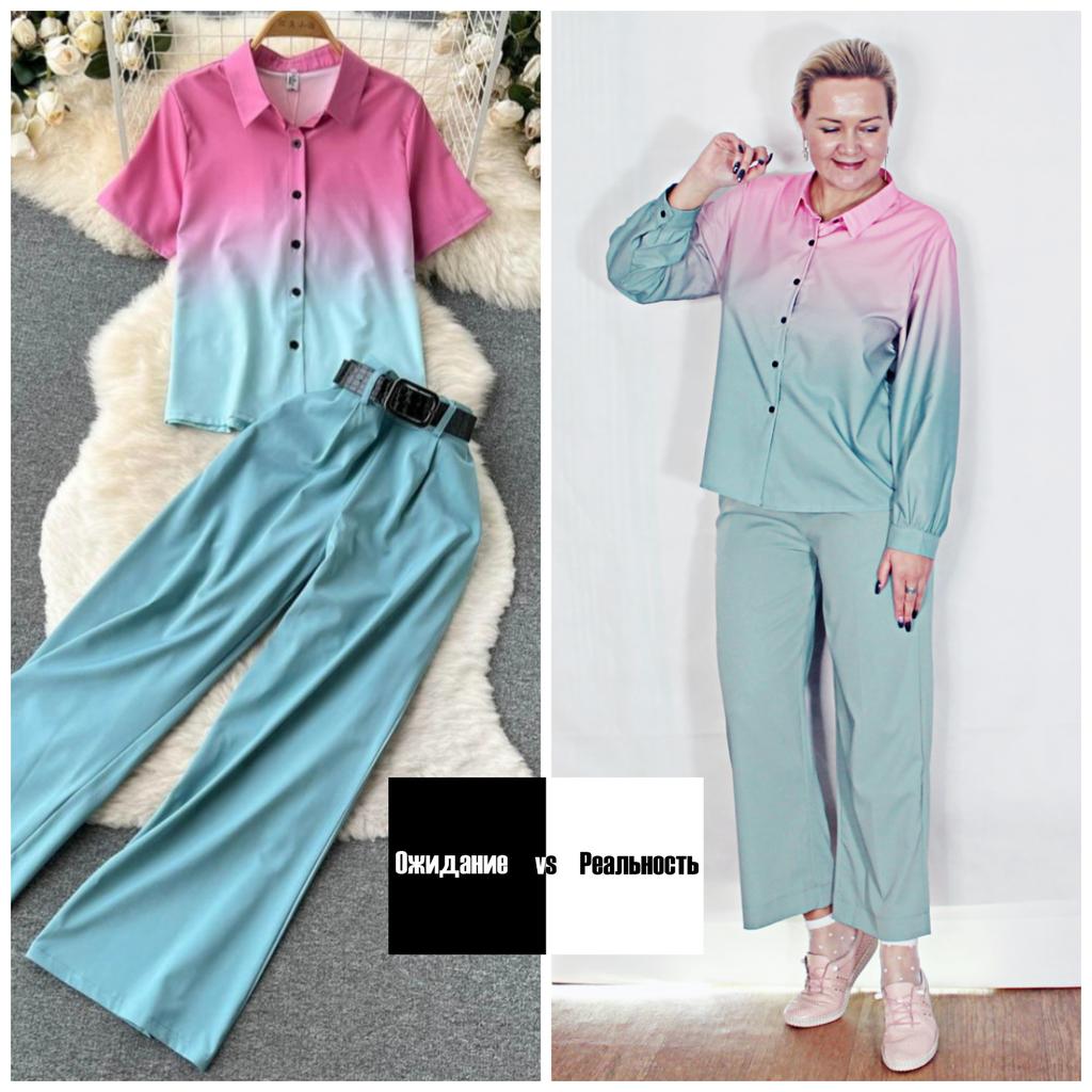 Плавный переход 💚💗 * все ссылки на вещи, которые используются в этом обзоре, можно найти только в моем Telegram канале Miss_Kuksik Ищите пост по тегу #костюм_градиент Привет! Сразу оговорюсь костюм придёт к вам с черным поясом, как на картинке продавца ,он и мне пришел, но когда стала фотографировать обзор пояс ну ни как не могла найти, нашелся он уже после того, как материал был готов😊 Понять и простить 😁 Ткань: Легкая и летняя. Мягкая и струящаяся. Не копит статику и приятная к телу. Не тянется и не светит. Да это синтетика, но как принято говорить - достойная. Дизайн: Костюм состоит из трех предметов: - Рубашка - Штаны - Пояс Рубашка имеет плавный и главное грамотный переход цвета от нежно розового до мятного. Пуговки черного цвета и дополняют черный пояс. Вообще мне кажется, что создатели вдохновились цветовым сочетанием арбуза, где сочетаются чёрные косточки, красная мякоть и зеленая корочка, только усета сделали нежнее. Штаны - широкие и удобные. Длина на мой рост до щиколотки. Посадка высокая, на талии со стороны спины вшита резинка. По бокам карманы. Качество: Пошито ровно и аккуратно. Минусы: Заказала размер L пришел костюм в размер XXL. Не знаю что это было? Может наклейку перепутали? Но костюм мне подошёл отлично. Сезон: Лето Цвет: Мятный, розовый, черный Размер: На мне XXL Мои параметры: рост 172 см 96/75/105 см Детальные замеры изделия: Рубашка: Длина 66 см ОГ 110 см ОТ 112 см Плечи 42 см Штаны: Длина 98 см ОТ 76 до 104 см ОБ 114 см От талии до паха 36 см Резюмирую; Мне понравились костюм я однозначно буду его носить. При выборе размера ориентируюсь на таблицу продавца! Я не прощаюсь, Мой TG Miss_Kuksik