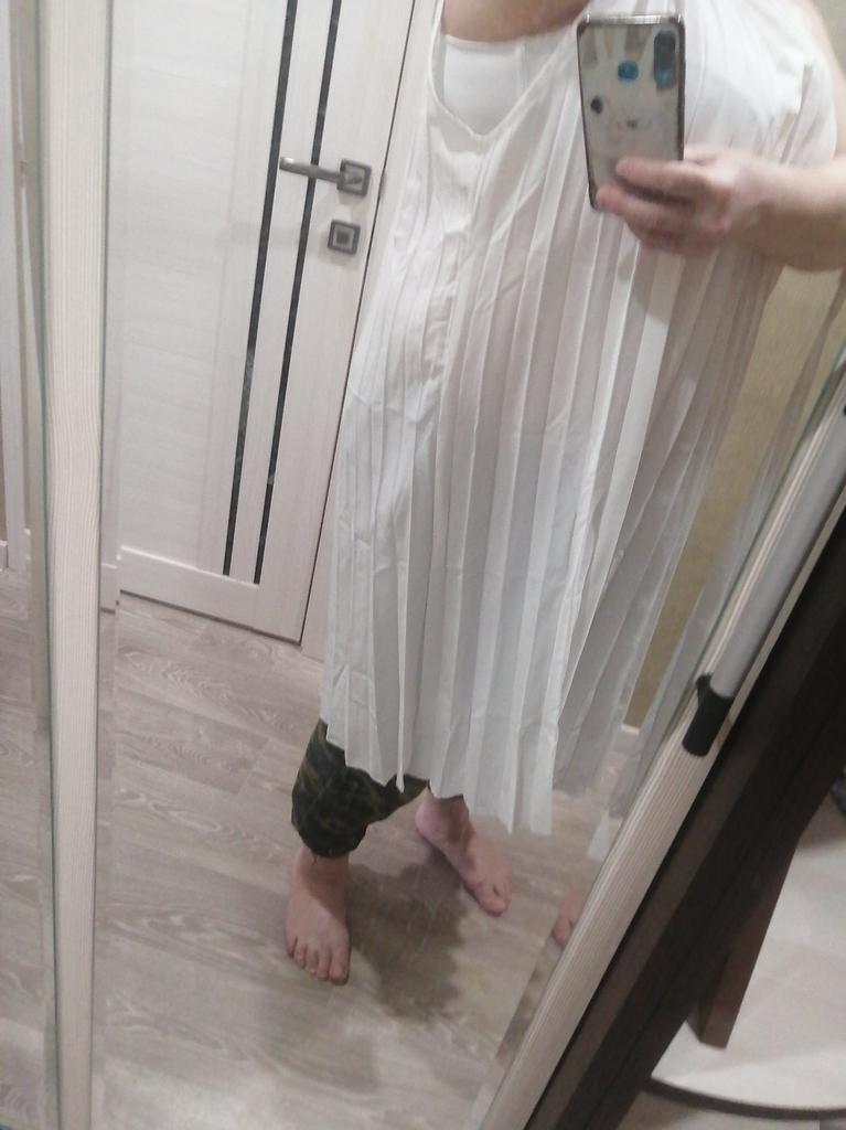 Смотрится прекрасно! С правильными аксессуарами и каблуком - составит достойную конкуренцию более дорогим нарядам)))) Ношу размер М, взяла XL с расчётом, что будет свободно смотреться и струиться и не прогадала!!!!)) За такую стоимость - платье супер! На лето прекрасно! Спасибо большое продавцу: посылка пришла вовремя, все вещи отличного качества 👍👍👍