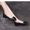 Туфли из натуральной мягкой кожи. Женские весенне-осенние нескользящие удобные кожаные туфли на мягкой подошве на толстом каблуке. Женские модные туфли с круглым носком.