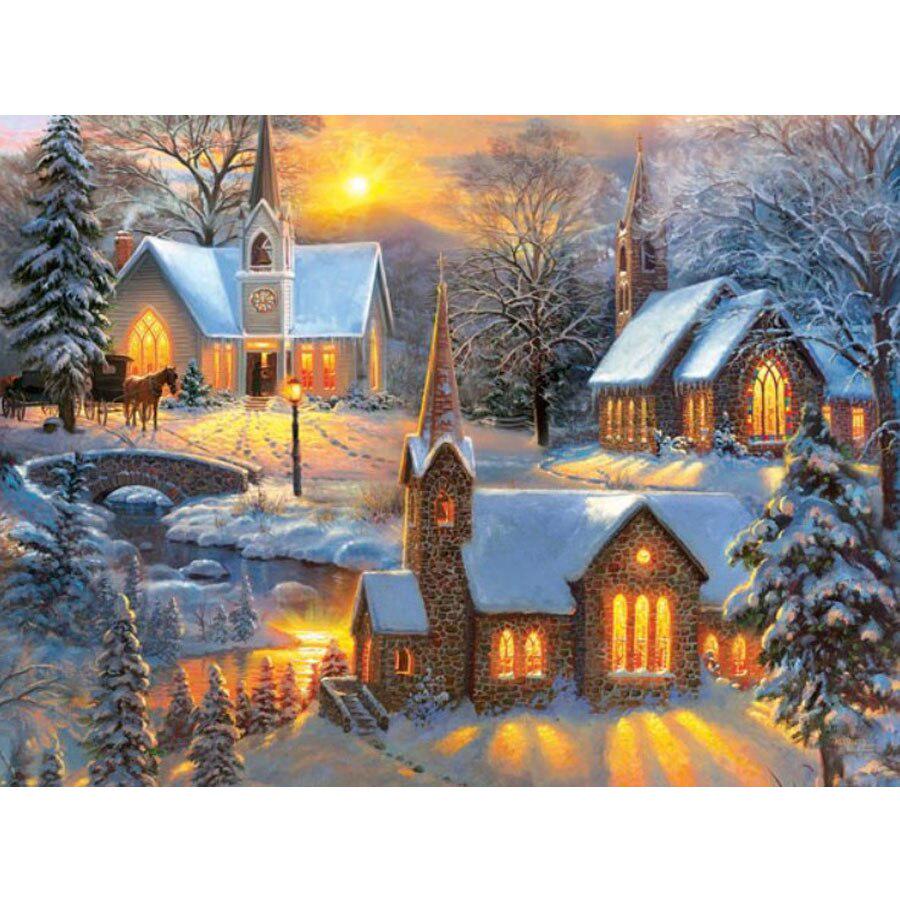 DIY Полный круглый дрель Алмазная картина Сияющие огни Дом Мозаика Вышивка Крестом