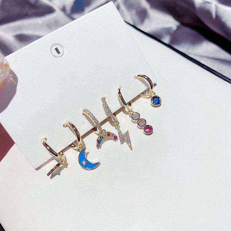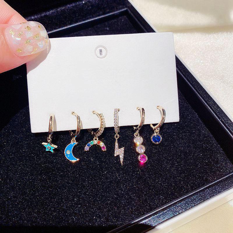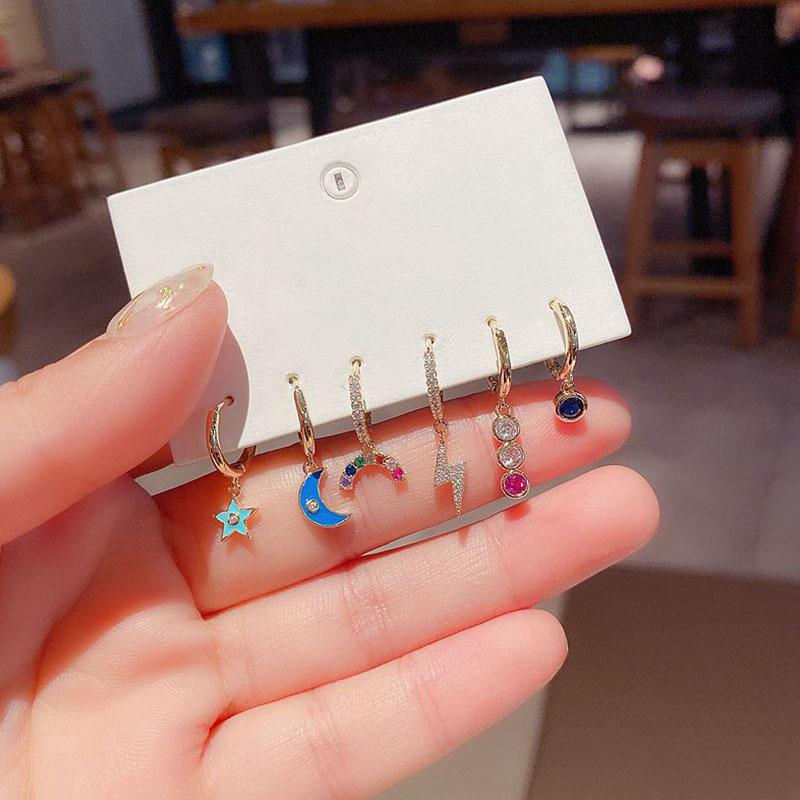 ANENJERY Серьги-кольца с луной и звездами для женщин, цветной циркон, комплект из 6 штук, оптовая продажа
