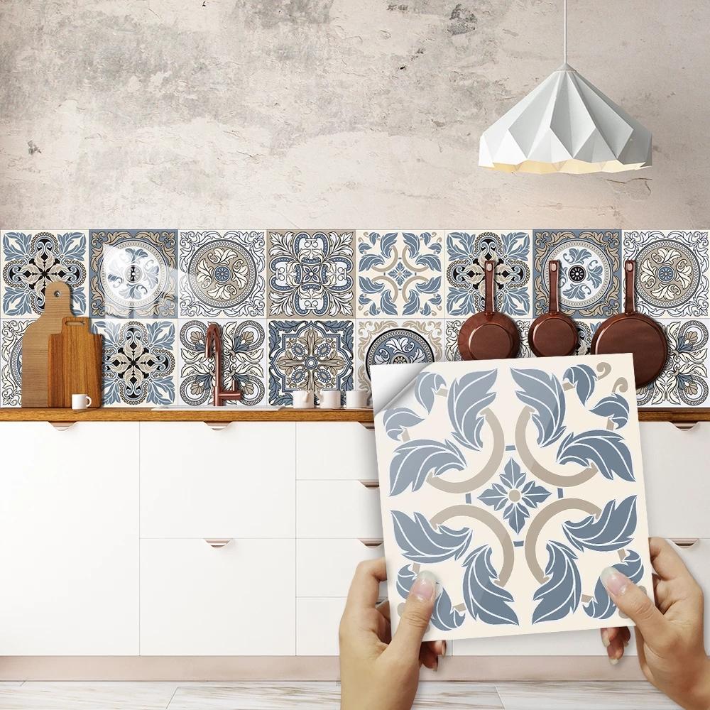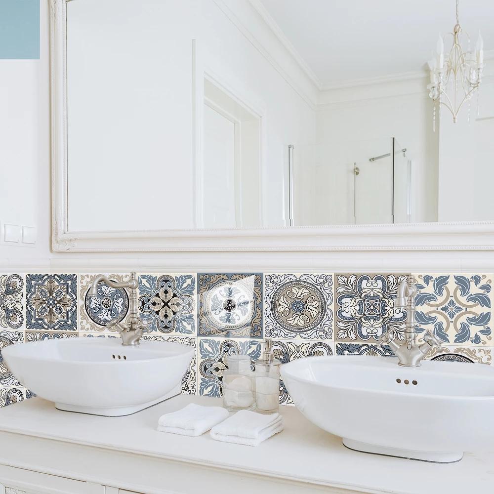 10 шт., настенная наклейка на плитку в португальском стиле, кухонный фартук, маслостойкая ванная комната, умывальник, домашний декор, пилинг, наклейки на стену