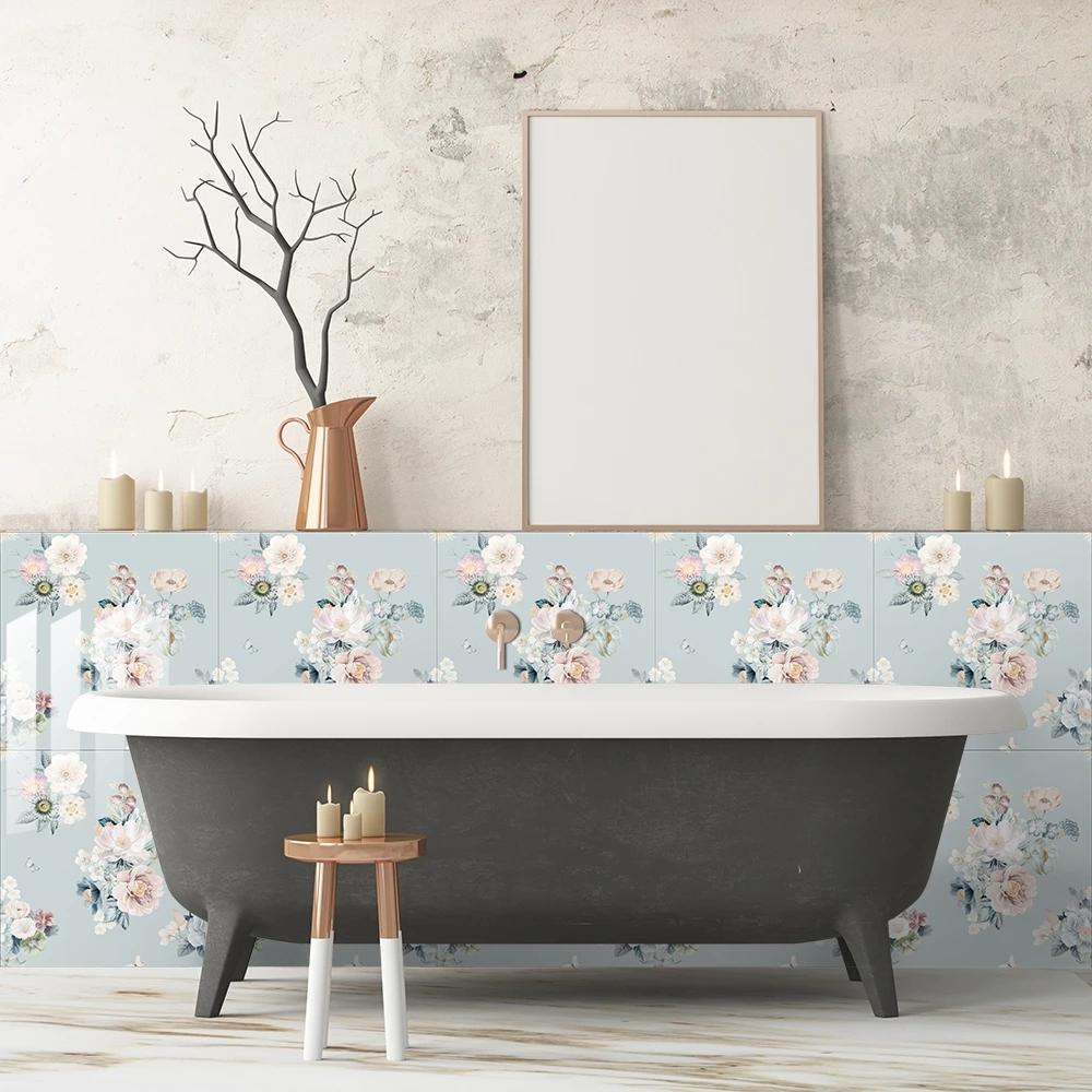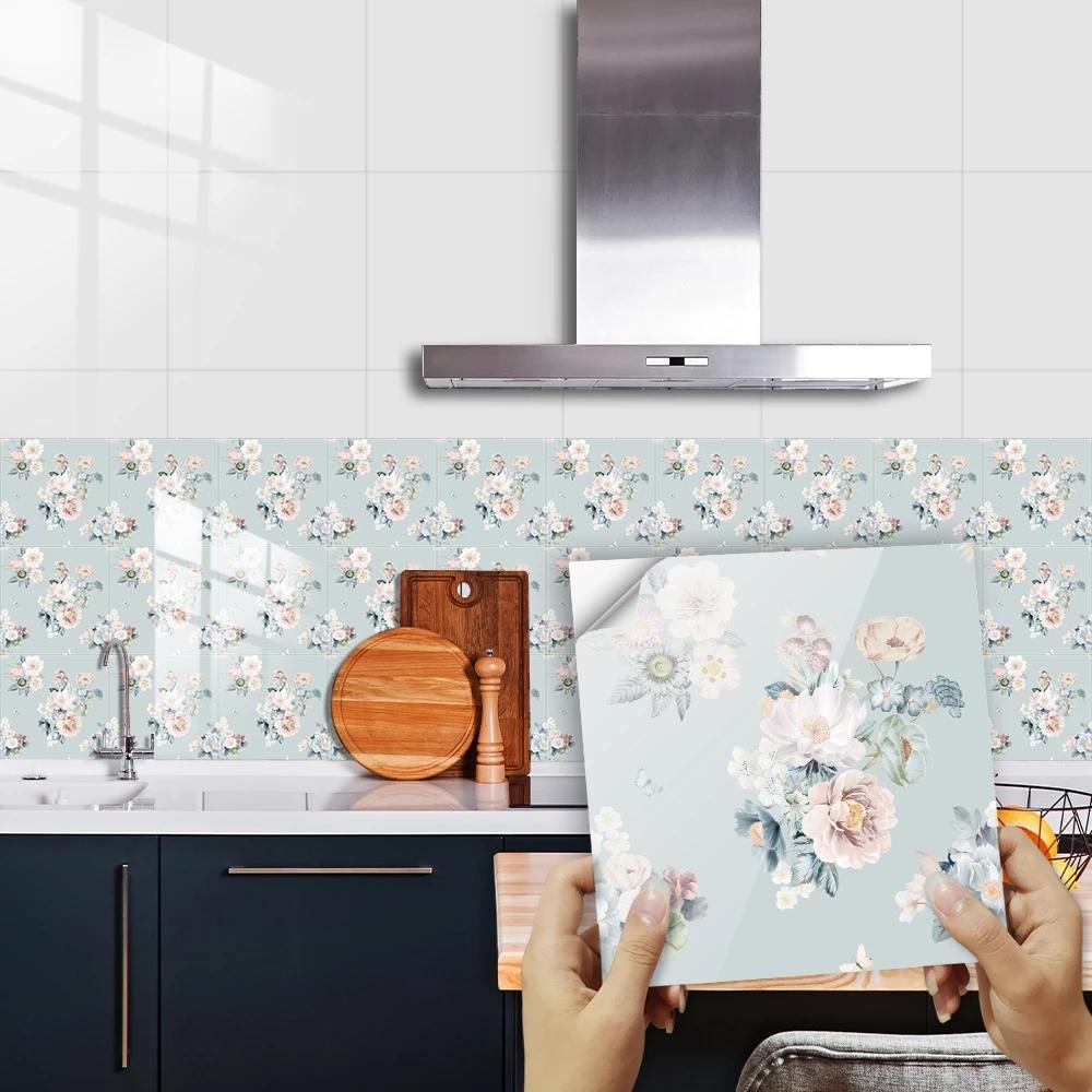 10шт синий богемный цветочный цветок плитка стикер стены кухня щиток маслостойкая ванная комната умывальник домашний декор пилинг палка художественные обои