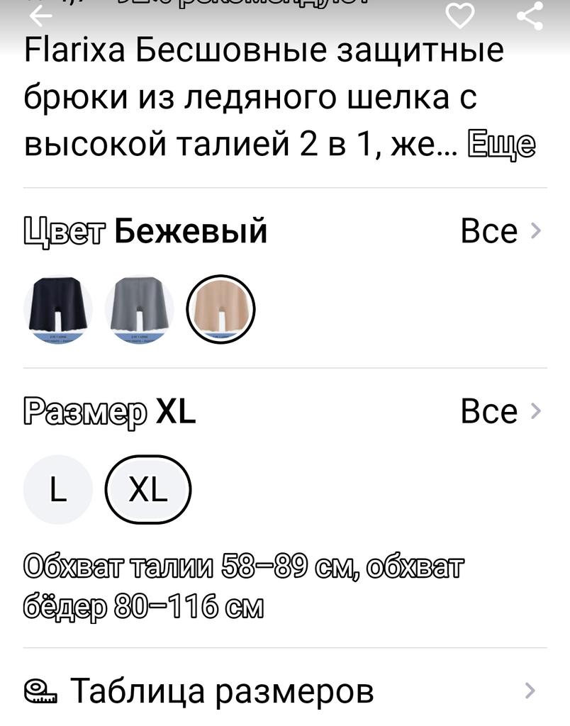 Брала по шкале размеров подобрала даже с плюсом, но они очень мелкие, высота стула короткая, т.е верхняя часть не высокая, если натягиваю на верх, чтоб не потерять их, то укорачивается голенища, а я брала для того, чтоб.не протирались ляжки между собой, короче не верная шкала размеров, по этому 4* На мой 52 размер советский. Ризиночка тонюсенькая, думаю будут сползать, но посмотрим на деле.., не знаю как ещё угадывать их размеры, вечно всё что не приобретаю, нужно переделывать, хоть и на вид аккуратные, тоненькие, ткань приятная, но в жару все равно будут парить... Обещали,что дотянуться до 116. объем в бедрах и у меня 109, талия 94см.....ориентируйтесь, когда будете приобретать