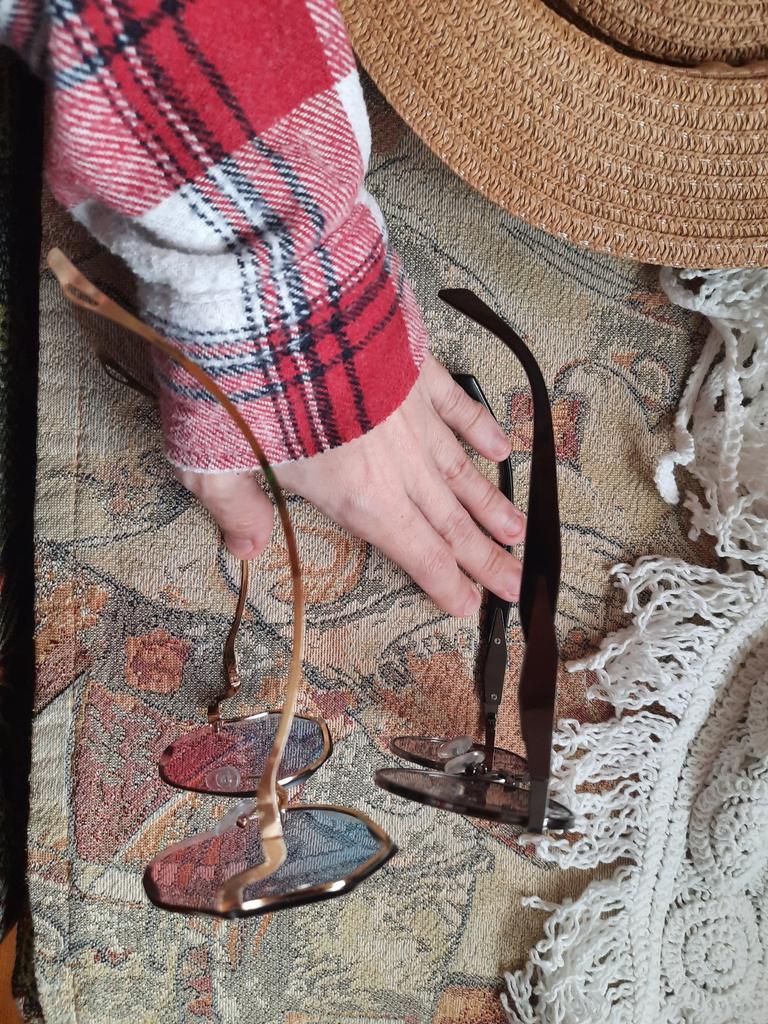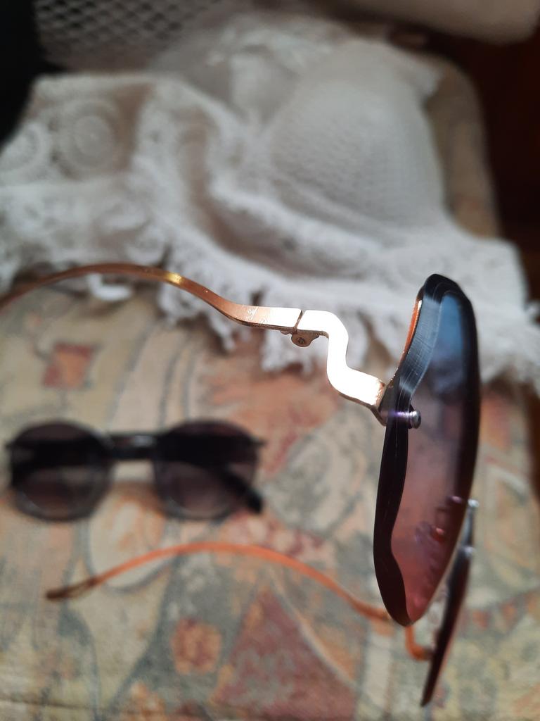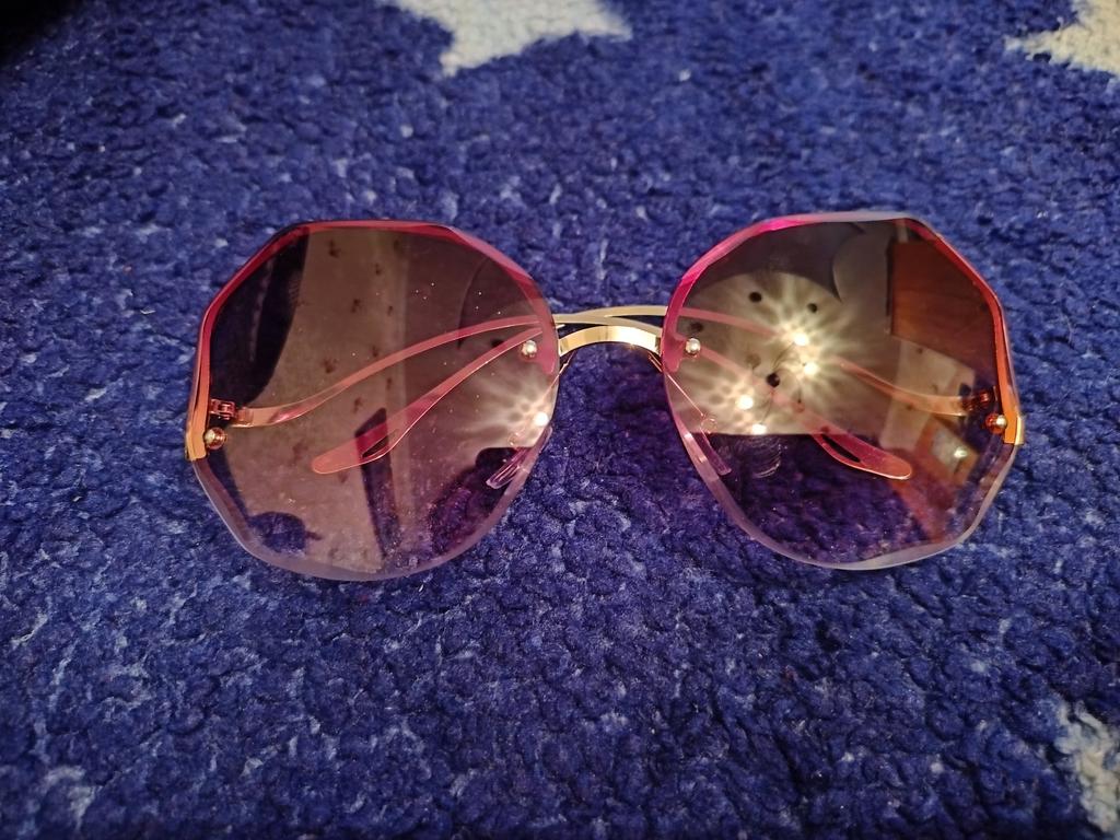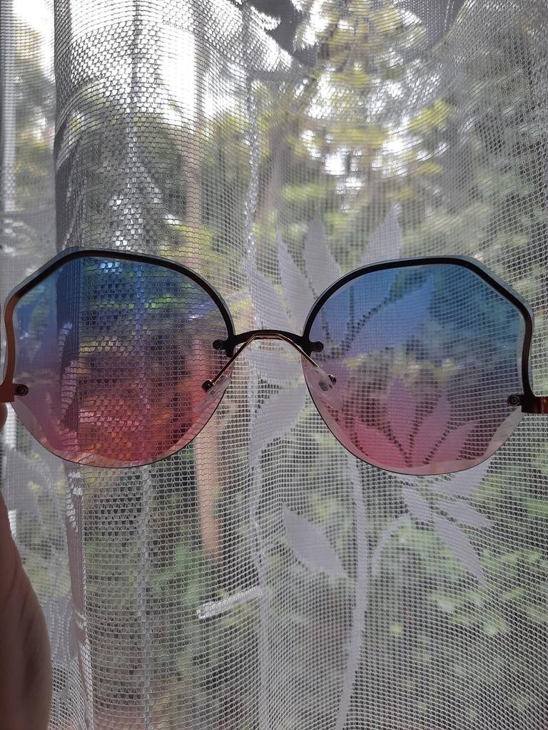 Очки огромные, увы не подошли и мне кажется в реале ярче цвет чем на фото продавца, снизу прям розовый, ярче, кукольнее, и они очень большие круглые, душки полудугой,не сели лично для меня ,сфотала со своими что ношу(сверху) эти и в высоту большие, и полностью закрывают брови, дуги тоже очень непривычно изогнуты по форме,полностью метал, покрашеный под золото цвет, впечатление что быстро сползет,хлипковаты, прям, очень тонкие душки. смотрите если лицо маленькое- явно др.модель ищите. Может кому пригодится, если бы я увидела по пропорциям примерно как они смотрятся с самой распространенной моделью и размером очков- то не взяла бы, понимая что зпрячут все лицо как маска а не очки.пусть мой отзыв поможет вам избежать ошибок. Но неожиданно оооочень подошли подруге, она светленькая, лицо более круглое, ей прям хорошо, задарила. Само стекло хорошо смотрится, дороже прям, душки конечно хлипковаты, надо обязательно носить чехол, очечник если класть в сумку их.