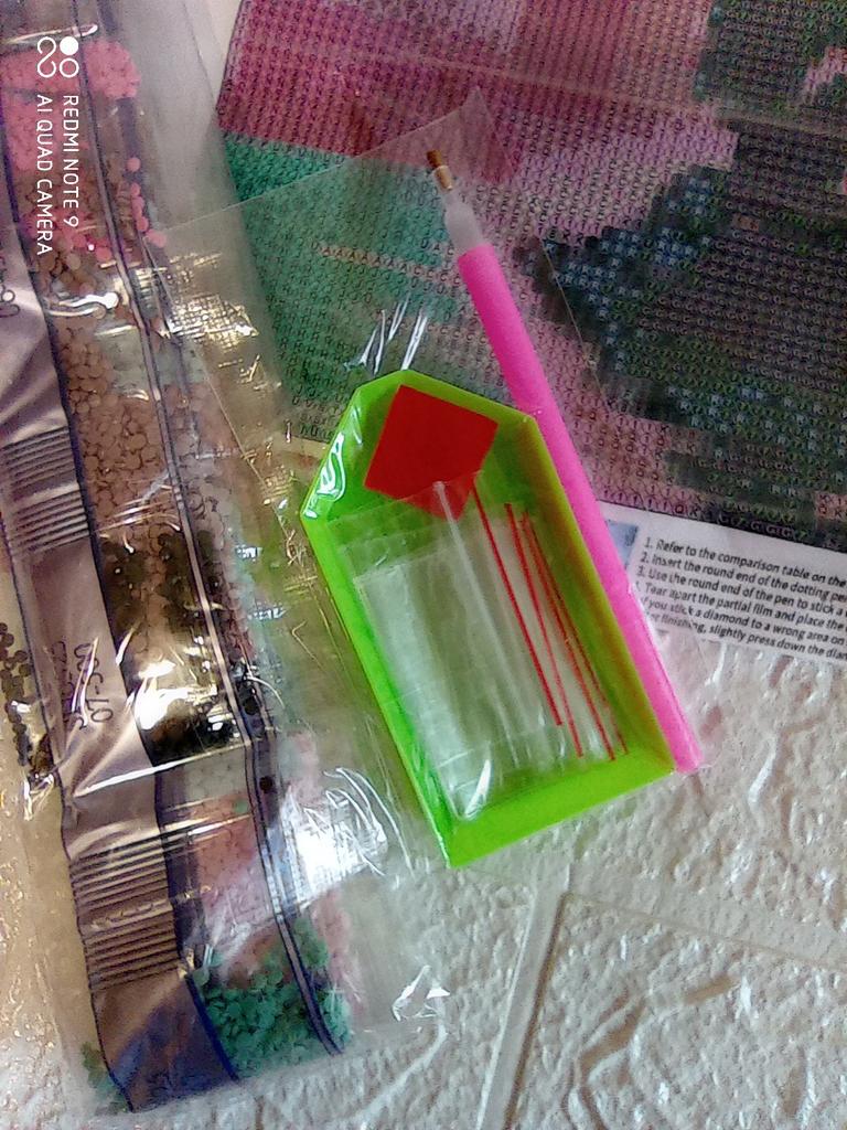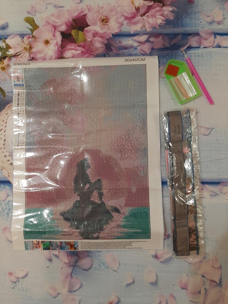 Алмазная выкладка "Лунная ночь" без подрамника Какая она красивая 😍 В комплект входит: 🔸Полотно с клеевой основой, пронумерованными ячейками и инструкцией на английском языке. 🔸Стилус, 🔸 Сухой клей для стилуса, 🔸Лоток для страз, 🔸 Комплект цветных страз. 🔸5 зип-пакетиков. Сверху клейкого слоя полотна - прозрачная пленка. Была скручена в рулон, но складок нет Классная штука! Очень довольна приобретением! Доставлена в почтовое отделение за 1,5 месяца живым треком в сборной посылке. Товар и продавца рекомендую 👍