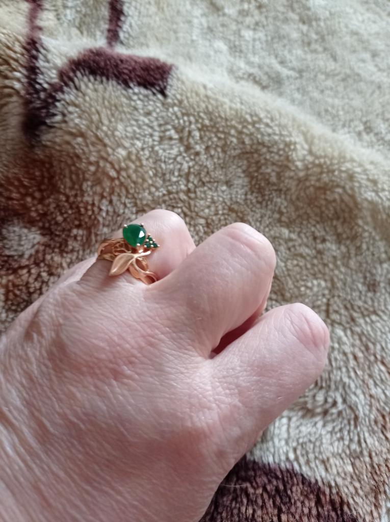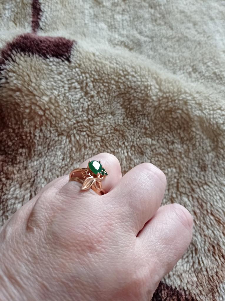 Красивое кольцо! Дизайн интересный, необычный. Зелёные кристаллы напоминают раскрывающийся бутон. Впереди лето - отличное время о года для необычных украшений! Хочется ещё и серьги такие прихватить! Вот дождусь очередных скидок, так и сделаю! Размер соответствует - 8 прекрасно идёт на средний палец. Иной раз берёшь восьмёрку, а она только на безымянный палец подходит. Вообщем я всем довольна и кольцо рекомендую всем к покупке!