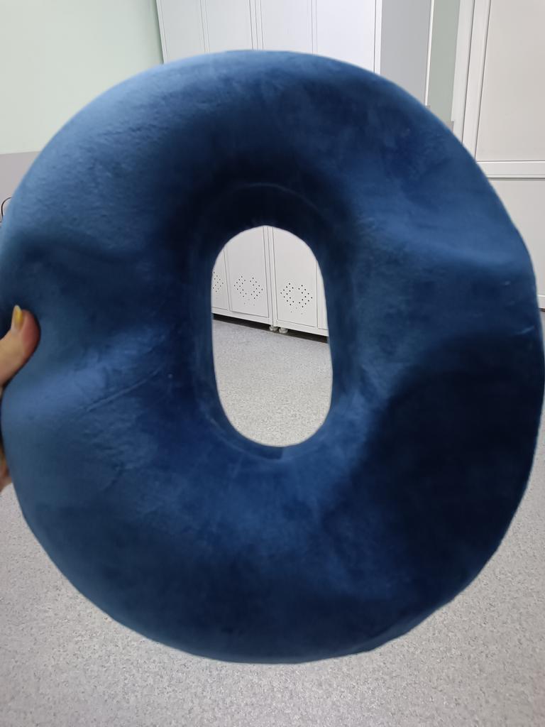 Жестковата ,наверно подсох наполнитель .большая,но дело привычки конечно,функцию свою выполняет .дополняю .очень облегчает сидячий процесс работы.не т болей которые были без нее.дополняю :три месяца сидячей работы швеей ,забыла что болел левый тазобедренный сустав и немела нога.очень удобная.копчик отдыхает ,был сломан когда-то.Думаю у кого нет проблем с пятой точкой ,не оценят по достоинству.она больше для облегчения существующих проблем.