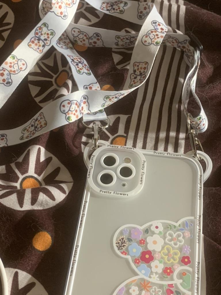 Корея Милый Цветок Медвежьи Ушки Кроссбоди Шнурок Чехол для Телефона Для iPhone 17 16 15 14 13 12 11 Pro XS Max X XR 7 8 Plus Ремешок Ударопрочная Мягкая Обложка