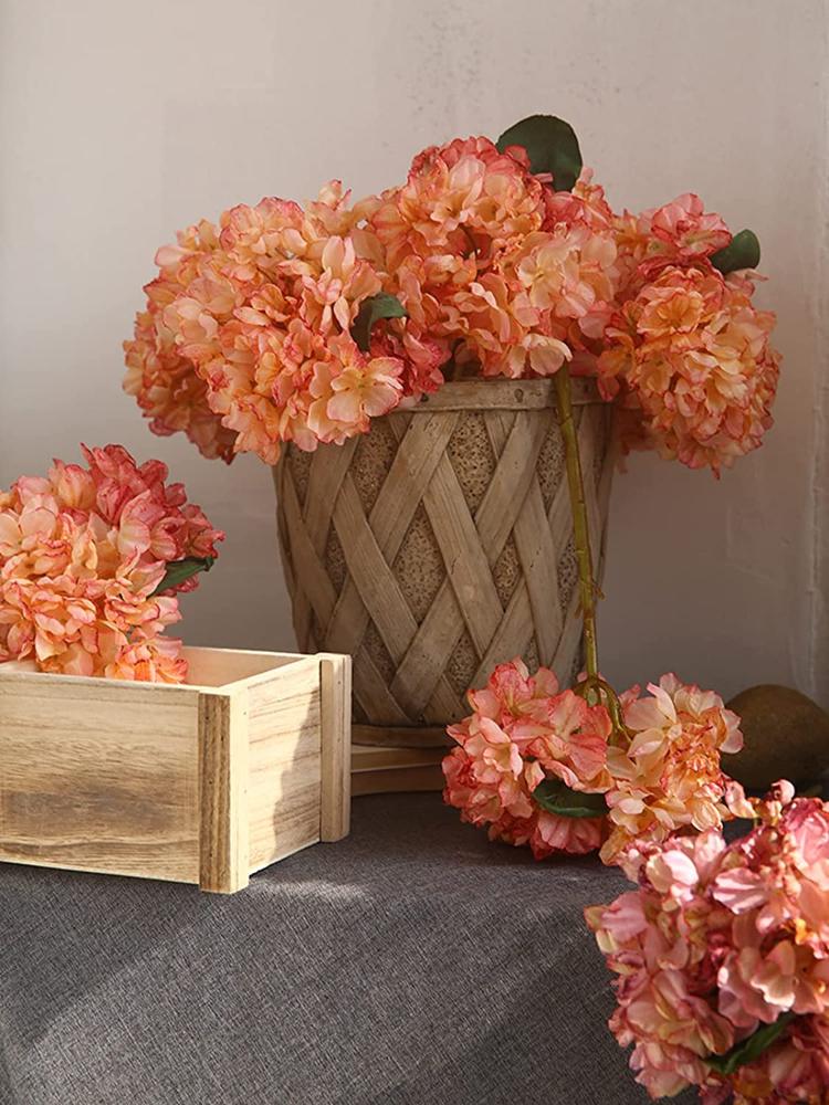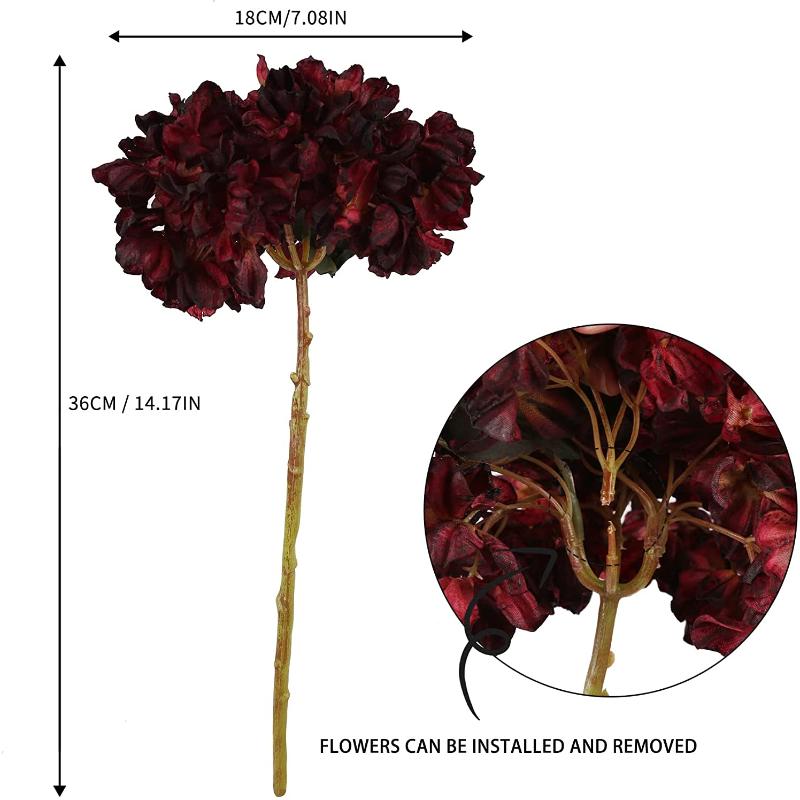 Материал: Цветы гортензии изготовлены из качественного шелка, с винтажными обожженными и полными лепестками, реалистично и винтажно выглядят. Длинные стебли имеют железную проволоку внутри проволоки, обернутой пластиком, которую можно согнуть или разрезать, чтобы легко соответствовать вашей форме DIY.