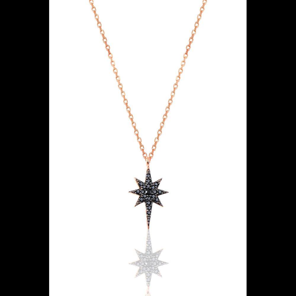 Женское серебряное ожерелье с черной каменной полярной звездой