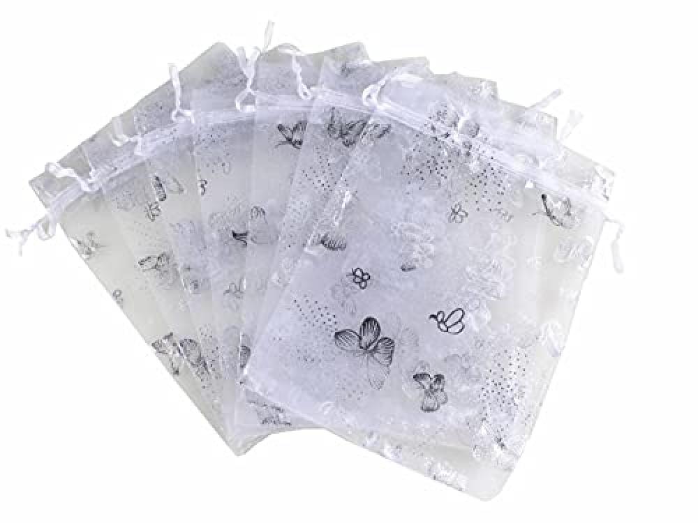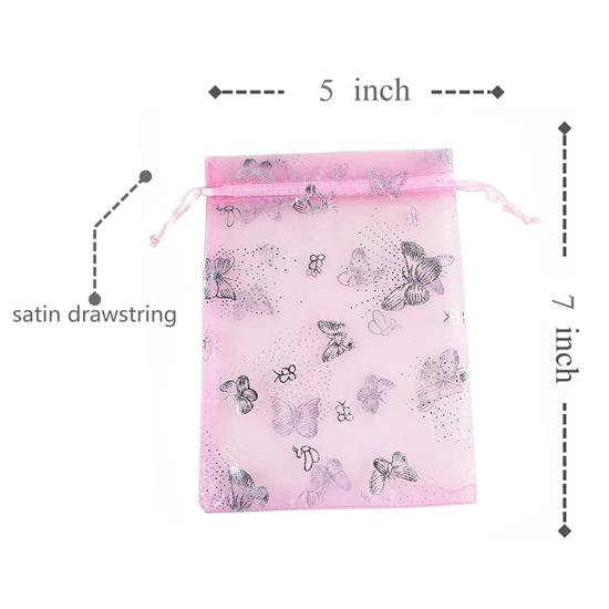 25 шт., 3 размера, мешки с бабочками горячего тиснения, подарочные пакеты для ювелирных изделий, мешки для конфет, свадебные подарочные пакеты на шнурке, марлевые мешки с горячим тиснением, мешки из органзы, мешочки для специй