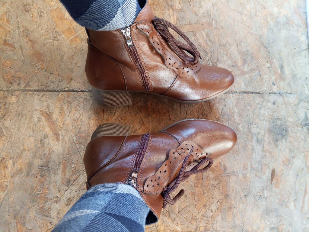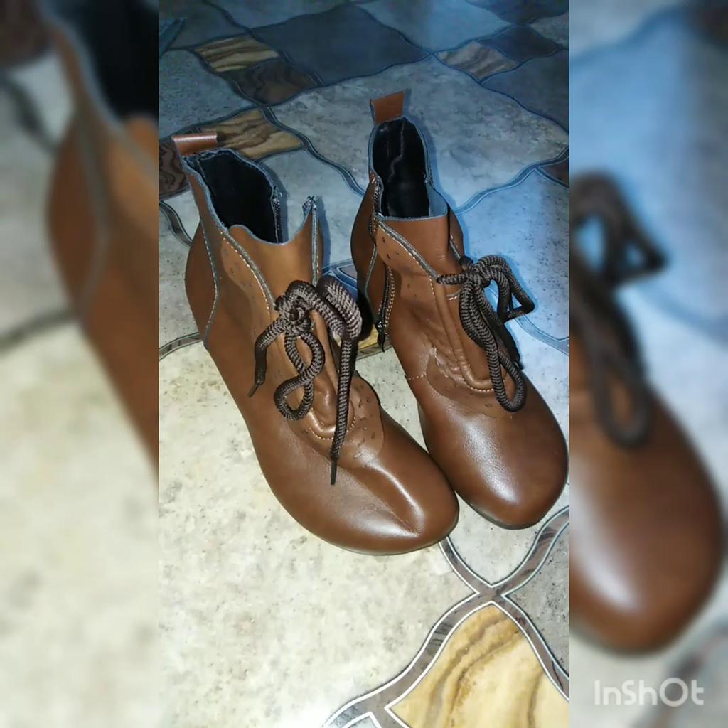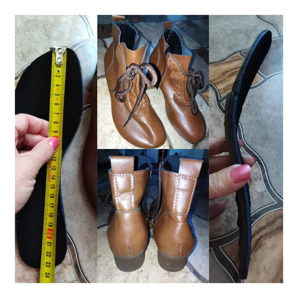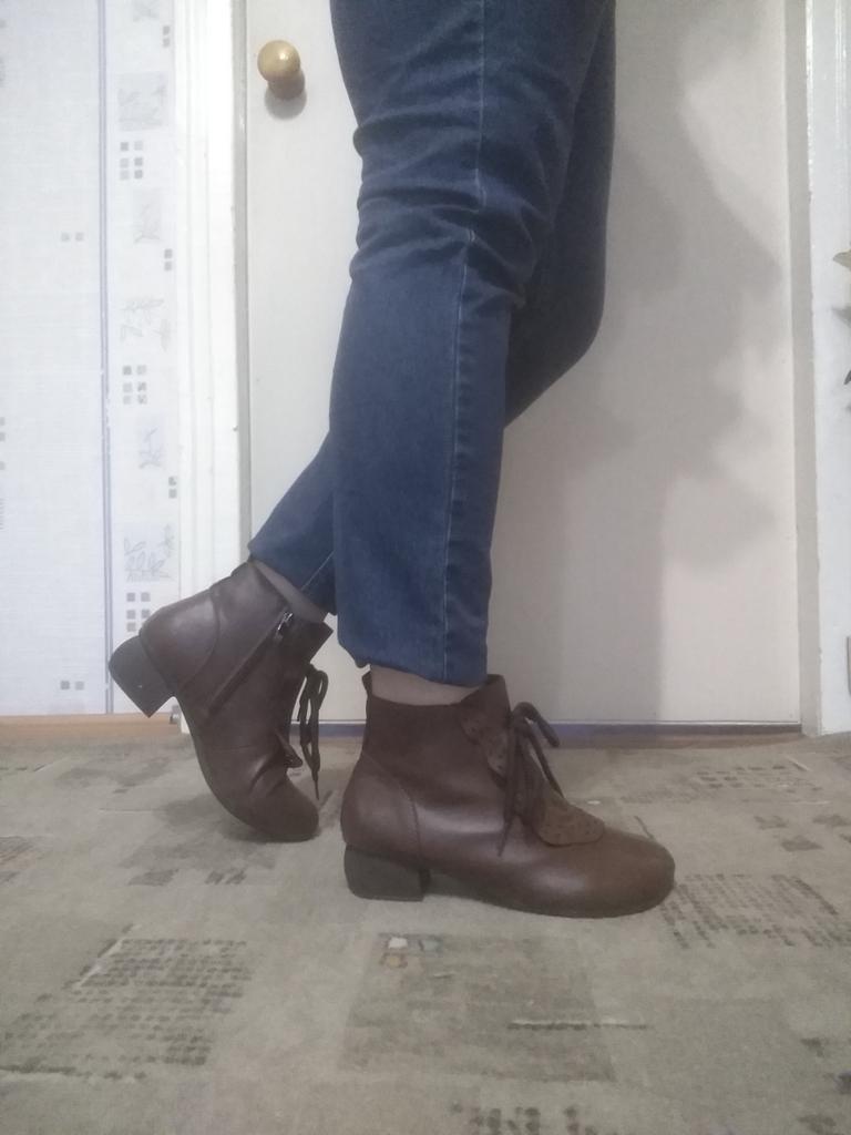 Обувь. 👢. Заказ был сделан, когда ещё не было отзывов... Показался интересным дизайн. Форма каблука - интересная; колодка - устойчивая, удобная....... Это все плюсы 😊 Сильно - НЕ КОЖА! Тянущийся зам...Это самое досадное! Стелька только технологическая....но жёсткая. Шнурок огромной длины - только декоративный характер имеет, несуразный.... Местами ободранная обтяжка на каблуках.... Есть внутренний слой какой-то мягкой, скользкой тряпочки, которая способствует потению ног 😣.... В общем, я не довольная этим приобретением... Хотя кому-то нравится. Что ж: "На вкус и цвет - фломастеры разные" ! Всем доброго здоровья и приятных покупок 🛍!