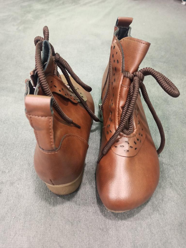 Заказала, как обычно, 40 размер, на свой 39. Ботинки примерно на сантиметр меньше, чем надо. Помялись, упаковка - обычный пакет, даже внутрь обуви пенопласт не положили. Неудачное приобретение... Жуткий запах, не просто сильный, а нестерпимо противный. Не знаю даже, что с ними теперь делать. Очень жаль потраченных денег, можно было купить что то более подходящее. Несколько дней назад получила другие ботинки, синие, примерно за ту же сумму, так они абсолютно нормальные, без запаха и размер подходит ( фото прилагаю). В этих же не смогу ходить, сильно малы. Не рекомендую.