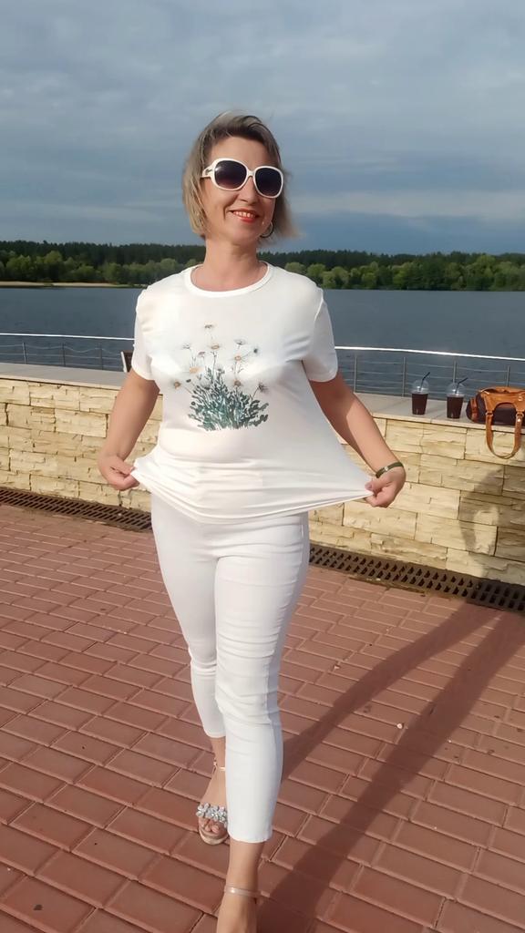 Симпатичная футболка на лето 🦋🥀🍒☀️🍓 Футболка традиционного кроя: прямая, округлый вырез горловины, рукава короткие, длина средняя,принт в виде ромашек 🌼🌼🌼 Материал полиэстер: мягкий, лёгкий, эластичный, приятный к телу 👌 Ткань немного просвечивает, не электризуется, тянется хорошо 👍💯 Цвет белый, освежающий, рисунок не сильно яркий,но все равно выразительный 👌🌼🌼🌼 На параметры ОГ 94, ОТ 75, ОБ 98, рост 1, 65 я взяла размер XL☝️ Мне футболка подошла идеально 👍💯 По моему замеру на размер XL ☝️: ОГ 94-104 см Длина 56 см☝️ Качество хорошее 👍💯: швы ровные, аккуратные, нитки не торчат, дефектов не имеет. Рекомендую 🤗 к покупке.