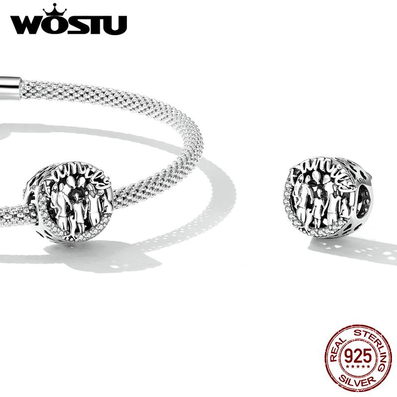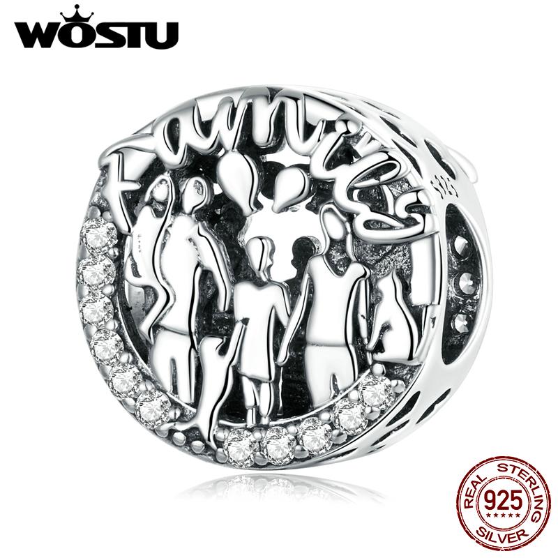 WOSTU Стерлингового серебра 925 пробы, подвеска для счастливой семьи, круглая бусина, женская, подходит для оригинального браслета «сделай сам», ювелирное изделие, подарок