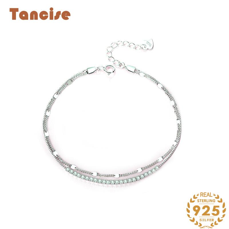 Танциз Стерлингового Серебра 925 пробы с Цирконом Браслет Ювелирные Изделия Геометрический Бисер Цепи Браслеты Мода Изящный Свадебный Подарок для Подруги Женщины