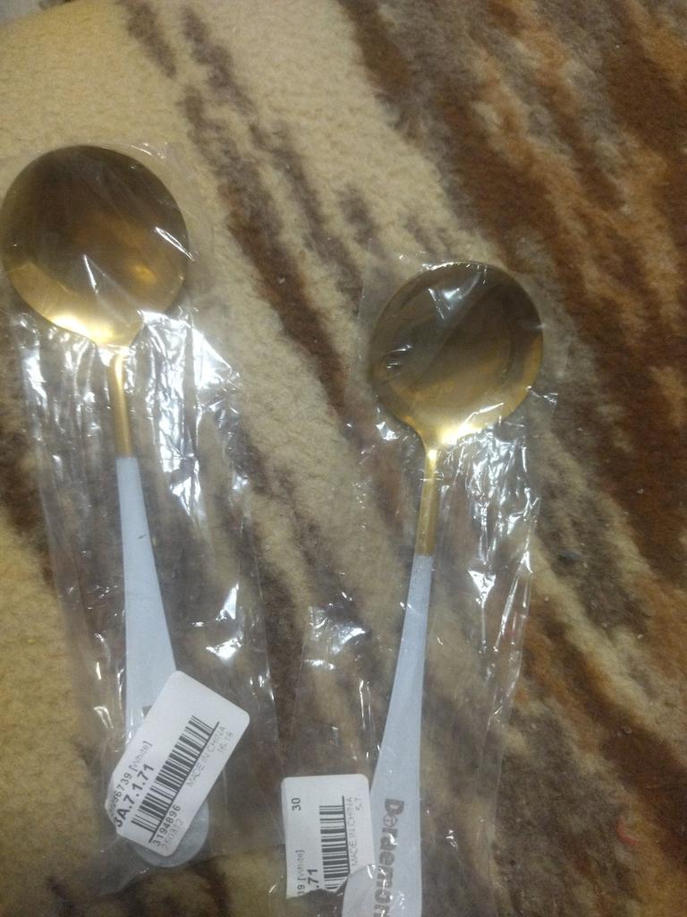Вот такие суповые ложки приехали. Я думала они побольше и поглубже, но для каши пойдут. Подарю внучкам, там на ложке есть гравировка с какой- то мордочкой, думаю внучкам понравится. К покупке рекомендую.