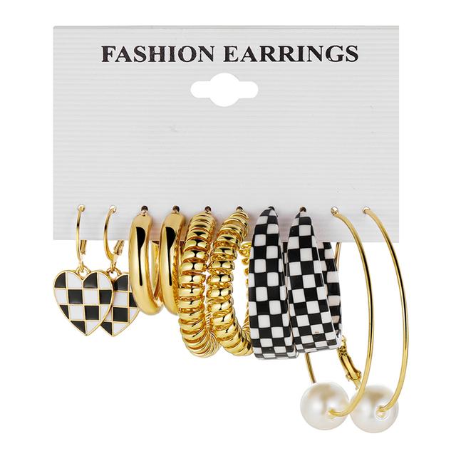 Модные черные серьги в форме сердца с решеткой, комплект для женщин, модные красочные серьги-капли, трендовый набор серег, ювелирных изделий
