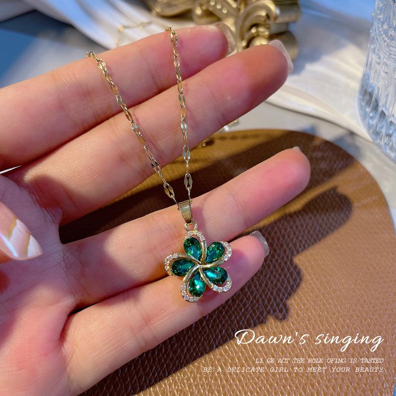 Изысканное ожерелье из нержавеющей стали 316L с зеленым цирконом и цветком, женская модная цепочка для вечеринок и свиданий на ключицы, цепочка для свитера, подарок
