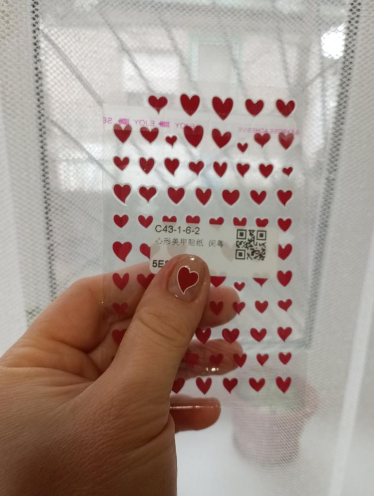 НАКЛЕЙКИ ДЛЯ НОГТЕЙ 💅. ❤️ Наклейки расположены на пластиковом блистере и упакованы в прозрачный пакетик. У продавца представлены различные дизайны на выбор. ❤️ Наклейки в виде миленьких сердечек разных размеров и форм. ❤️ Я наклеила на ноготь и покрыла прозрачным лаком. Третий день держится. Покупкой довольна 👍! Желаю всем только удачных покупок 🛍️!💋💋💋