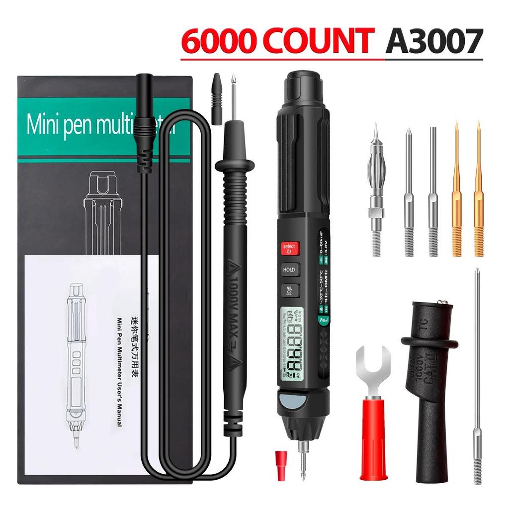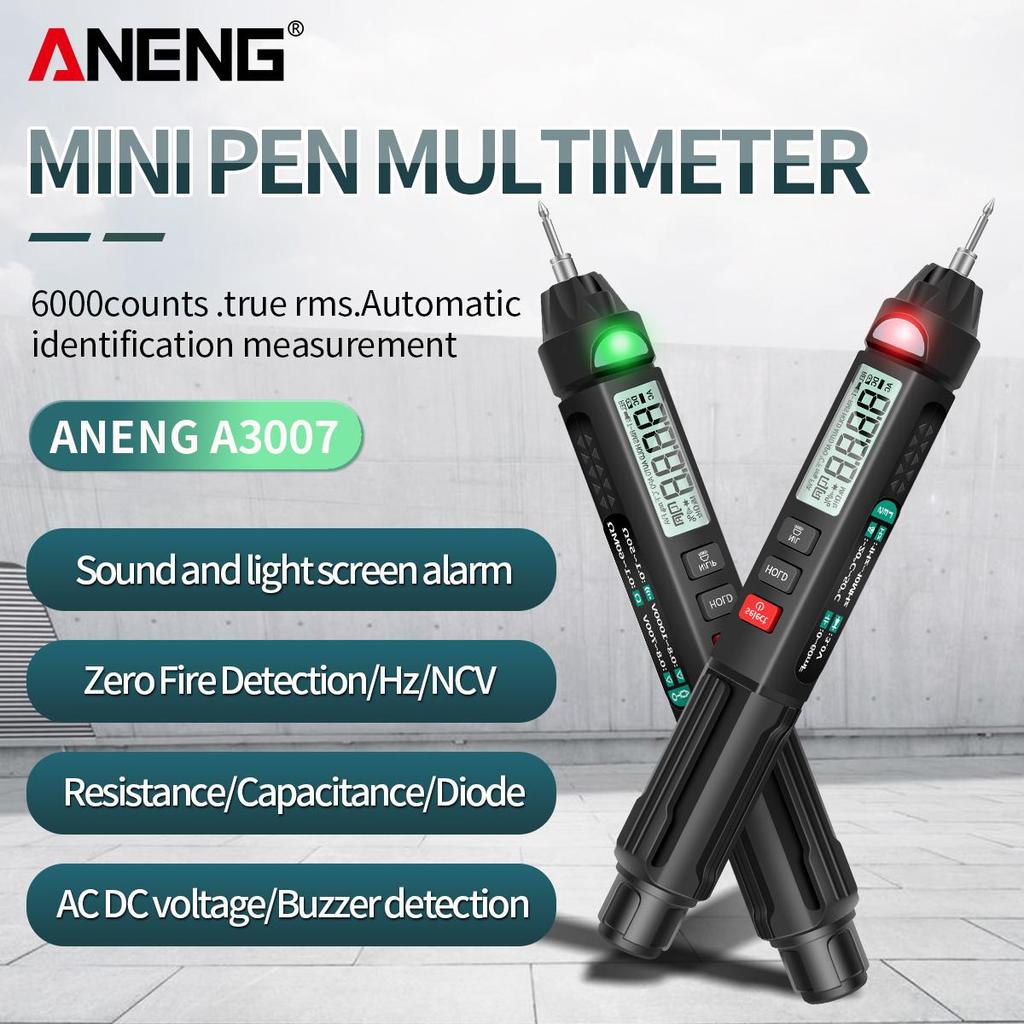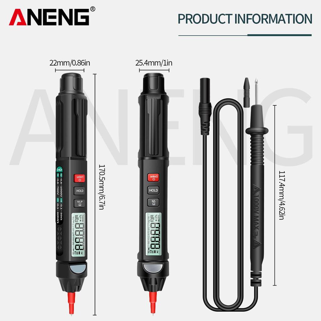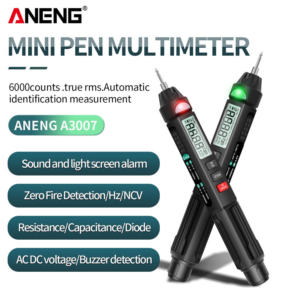 6000 Counts - карманный тип 3 5/6 цифр True RMS Smart Multimeter pen type, нет необходимости поворачивать циферблат для выбора функции, в соответствии с входным напряжением / сопротивлением / разницей, измеритель автоматически идентифицирует и измеряет, производительность этой машины стабильна, высокая точность, высокая надежность, чтение ясно, функция защиты от перегрузки. Питание от батареи AAA 1,5 В, этот измеритель использует большой ЖК-дисплей и импульс питания.