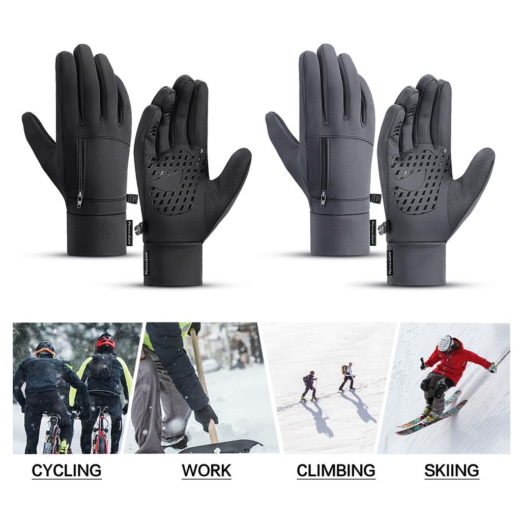 Эти зимние перчатки оснащены 3 пальцами с сенсорным экраном, карманом на молнии, водонепроницаемым, противоскользящим дизайном и внутренним флисом. Вы можете крепко держать вещи, писать в перчатках, не беспокоиться о просачивании воды и даже хранить вещи. Пусть они будут наслаждаться спортом, работой или повседневной одеждой.
