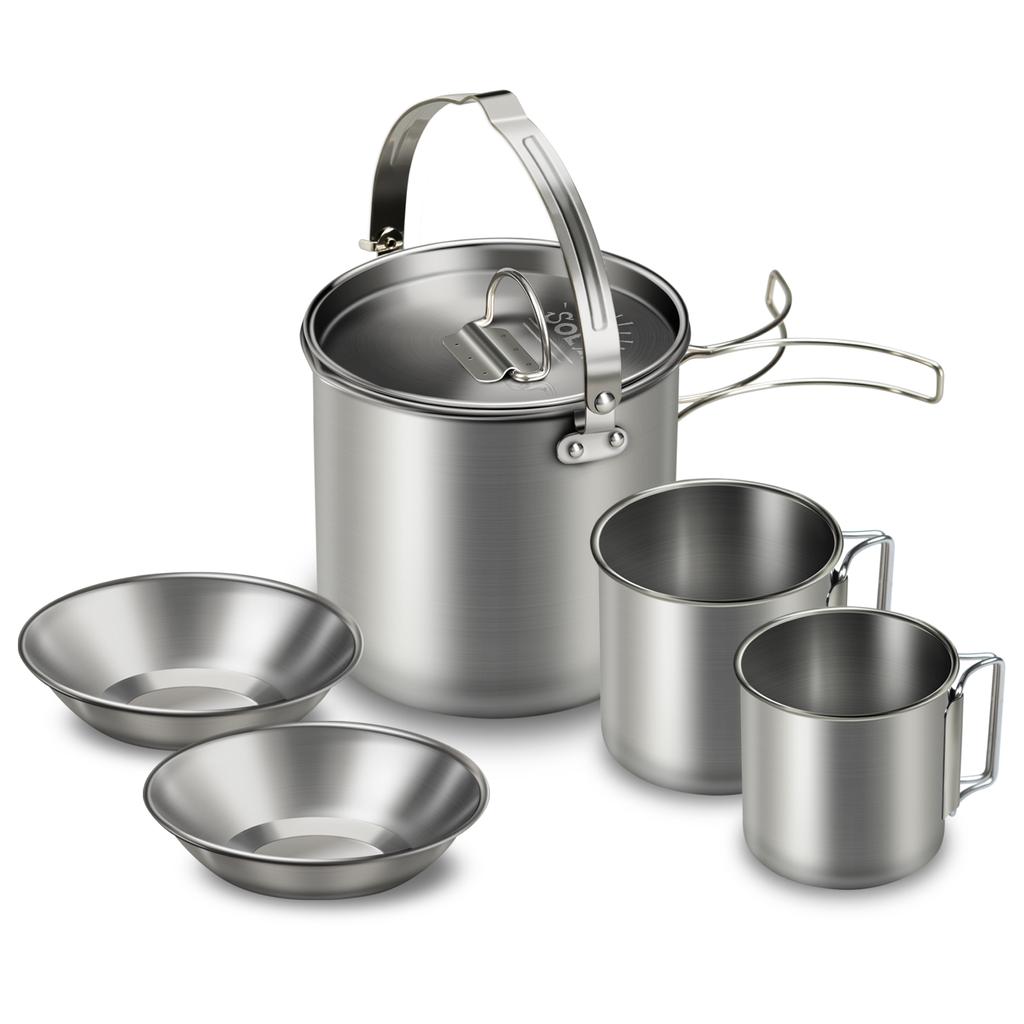 НАБОР ИЗ 5 ЧАСТЕЙ: В сочетании с чайником из нержавеющей стали, 2 чашками и 2 мисками, этот открытый набор посуды очень удобен для приготовления пищи на открытом воздухе.