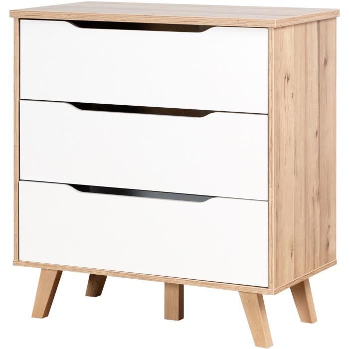 Комод с 3 ящиками - Декор дуб и матовый белый - Массивные ножки - Скандинавский стиль Д 80 см - VANKKA — купить товар онлайн с бесплатной доставкой до всему миру!