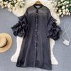 RUGOD Весеннее однобортное платье в европейском и американском стиле с французскими рюшами и трехмерными цветочными рукавами