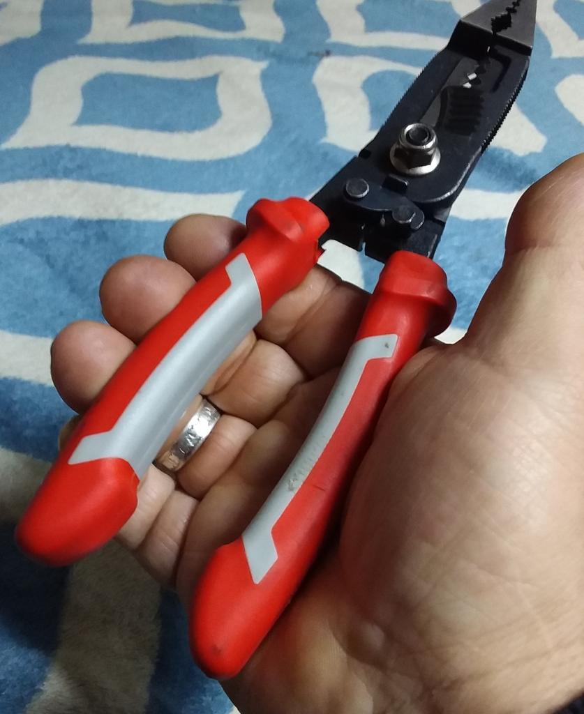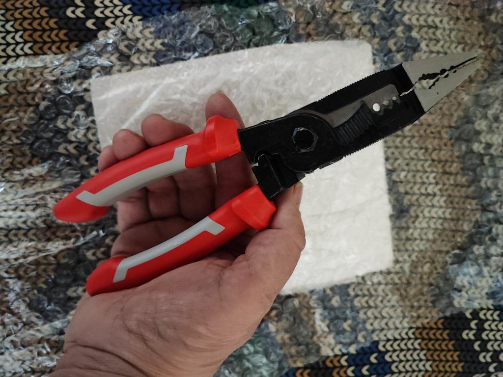 Пришёл товар, упакован в целости - сохранности, плотный, крепкий. Хорошо кусает, проверил провода, зачищает провода. Ручки очень крепко сидят. Металл, по видимости, очень надёжный. Захват очень хороший. Провода хорошо округляет,.... Пока пользуюсь, нормально, прошло чуть время,... Ручки сидят плотно, радует.