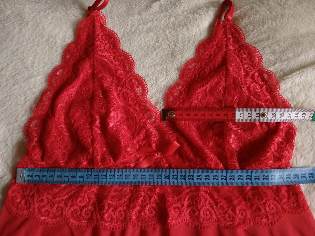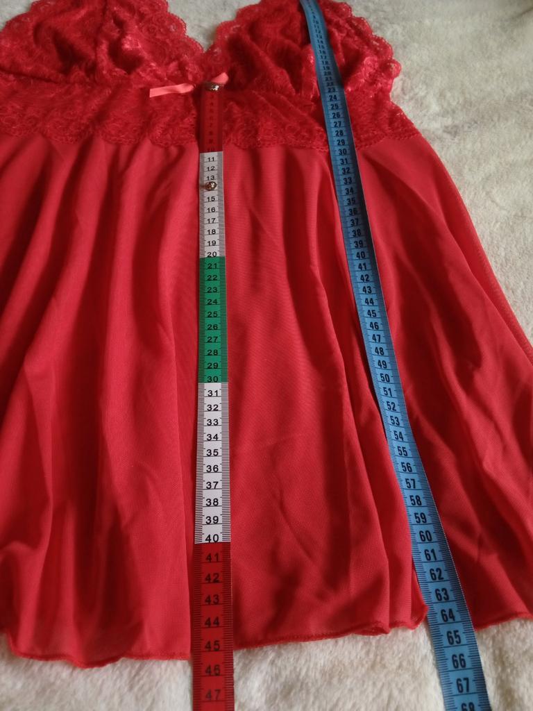 Очень ждала этот заказ, но оказалось зря. Сама рубашка очень красивая, но заказав большой размер 5 XL оказалась маленького размера. Под грудью на резиночке и сильно обтягивает живот. Когда делают большие размеры, нужно же думать, что у такого размера и пузо будет, даже если оно не большое, но оно всё равно будет. Поэтому подол от груди нужно было делать пошире, а не в обтяжку. Сильно короткая, как майка. Думала будет подлиннее. Хорошо что у меня дочка 42-44 размер носит, вот ей хорошо подошла рубашка. Трусы я не мерила, поэтому ничего не могу сказать.