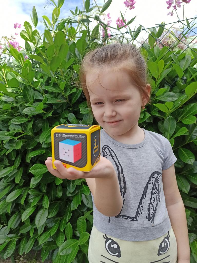 Кубик Рубика 🎲 🎲 Подписывайтесь в телеграм канал, там делюсь промокодами и конечно же обзорами покупок 😘 🎲 Взяла для себя и сына, пока он просто его крутит, развивая моторику рук. Крутится кубик просто замечательно, легко и плавно, в любую сторону. Сыну месяц назад подарили кубик, вот он крутился только в одну сторону, качество плохое и ещё воняет, а этот шикарный и запаха от него неприятного нет. 🎲 Ещё мне понравилось, что на нём нет наклеек, каждый цвет окрашен вместе с пластиком. Я всё детство пыталась собрать кубик и всё без результатов, тот кубик куда-то пропал ещё в 90-х, сейчас решила купить сыну и с новыми силами попытаться собрать, но на данный момент кубик находится в точке не возврата 😁 🎲 В комплекте инструкция для сборки кубика на китайском языке. Приходит кубик в красивой коробочке, отлично подойдёт на подарок. 🎲 Очень рекомендую к покупке именно этот кубик, он классный 👍🏼🥰 Доставка около трёх недель. Трек-номер отслеживался.