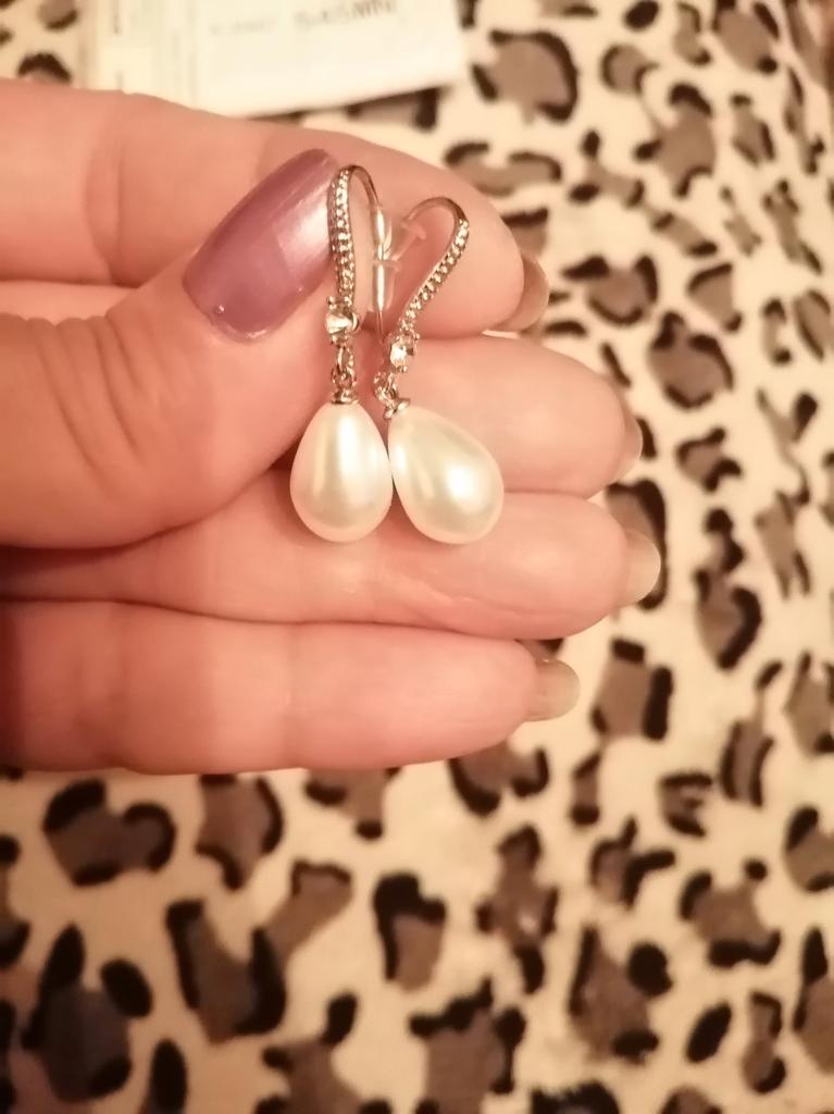 Серьги очень понравились. Качество на 5. Первый раз получила серьги отличного качества, я даже была в шоке. До этого приходили серьги (заказывала другие модели) только на выброс. Здесь дужка толстая не погнется и не сломается. Дорожка из камушек аккуратная. Смотрятся шикарно. Подумываю вторые заказать. Длина дужки 3 см. "Жемчужинка" см примерно 1,5 см. Спасибо производителю и продавцу. Наконец-то я купила приличную бижутерию.