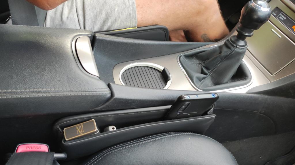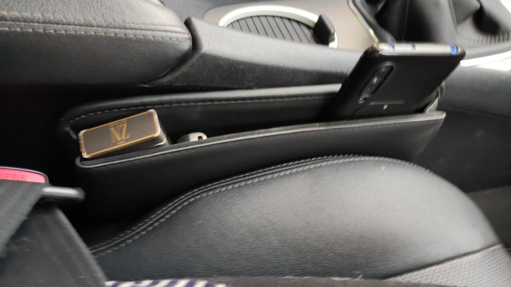 Материал дешевый, с кожей в салоне видно сильную разницу. Главное, что вообще проваливается между сидением и подлокотником, видимо на каждом автомобиле индивидуально примерять, может где то будет держаться