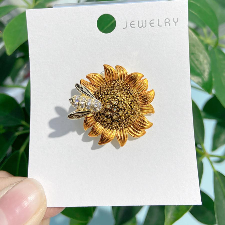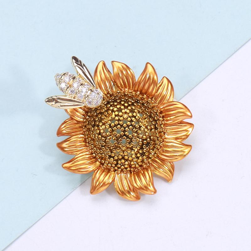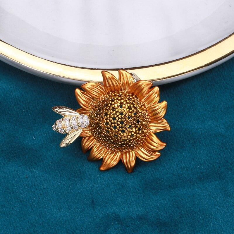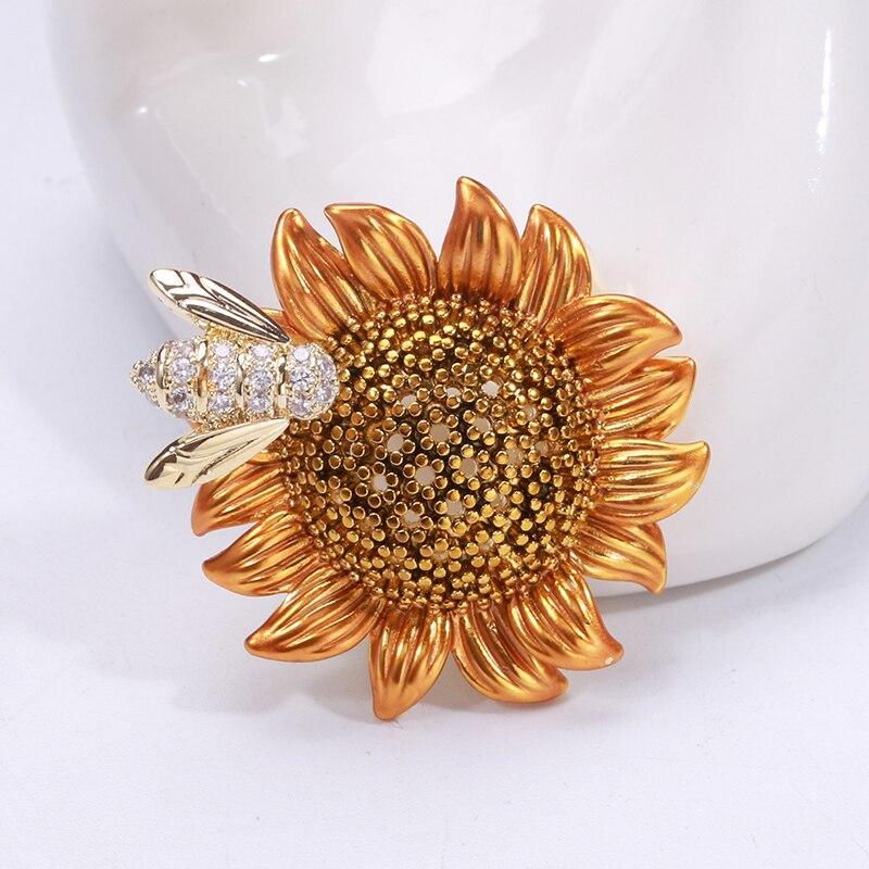 Blucome Броши в форме пчелы на подсолнухе для женщин, имитация золотого цвета, вечерние повседневные ювелирные булавки, подарки