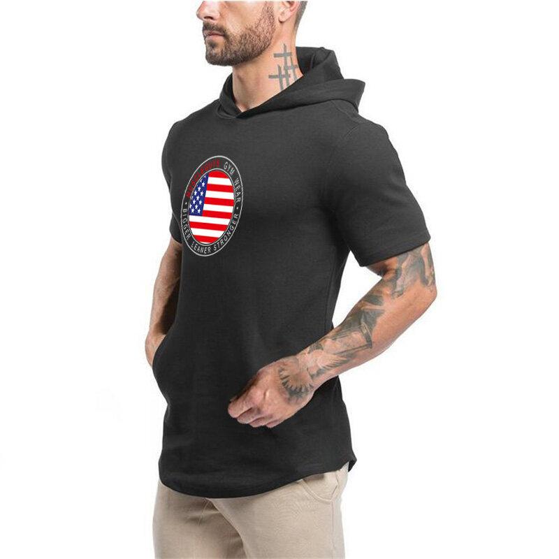 Muscleguys Новая летняя футболка для бодибилдинга с капюшоном, мужские толстовки для спортзала, футболка с короткими рукавами, хлопковая спортивная одежда, футболка для фитнеса с мышцами