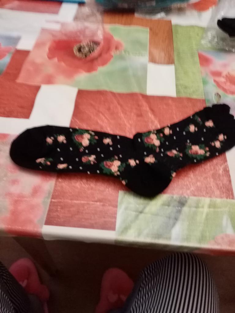 Отличные носки. Любителям не классики ))) рекомендую к покупке! Плотные безразмерные. На размер ноги 26, 5 - 27 подойдут легко. Красивые яркие розочки соответствуют цвету на фото. Резинка носков не традиционная- фалдит.Спасибо создателям.Спасибо Джум.