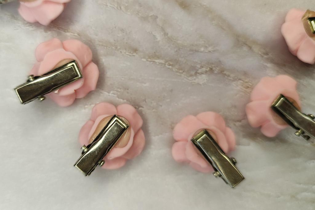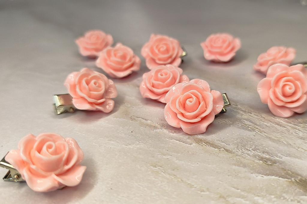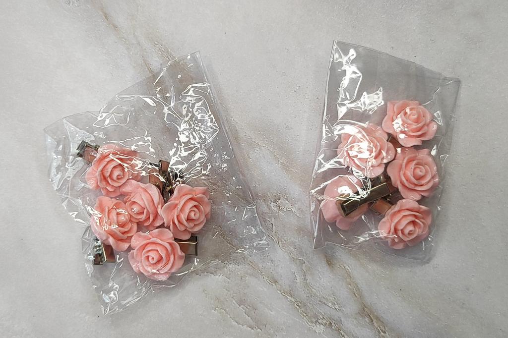 ▌Заколки ✅ 4 варианта (у меня розочки) ✅ Материал: смола ✅ Аккуратно выполнены 📏 Размер: диаметр цветка - 1,8 см. 📦 Комплект: 5 штук (я заказала 2 набора) 🌹 Заколки очень красивые 😻 нежно розового цвета 🩷