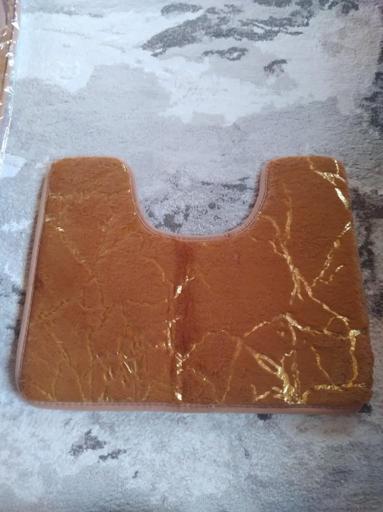 Туалетные коврики Смотрятся в точности как на картинке продавца. Очень мягкий и приятный на ощупь. С обратной стороны не скользящая часть. Есть небольшое несоответствие в указанных размерах о которых я должна сказать. У продавца указано: первый коврик 80 х 50, U образный коврик 50 х 40 и крышка 38 х 42 У меня получилось: 79 х 48; 47 х 38; 37 х 40. Разница буквально в сантиметр, но все же... В целом смотрится отлично и покупкой я довольна. Заказ шёл ко мне 28 дней.