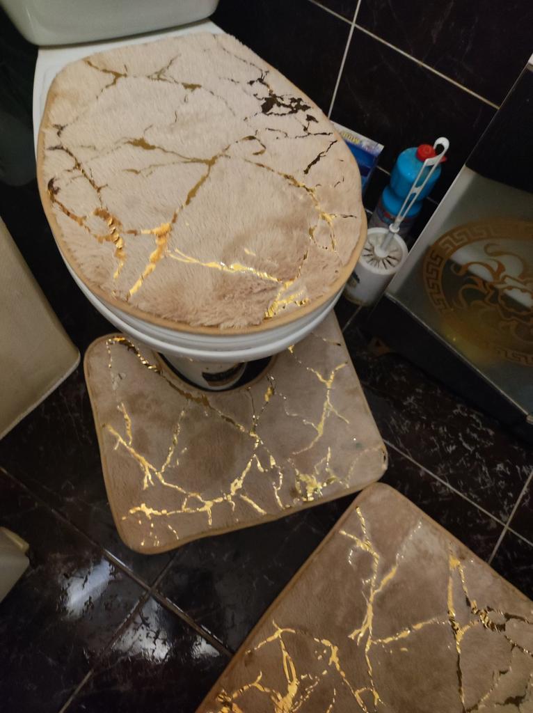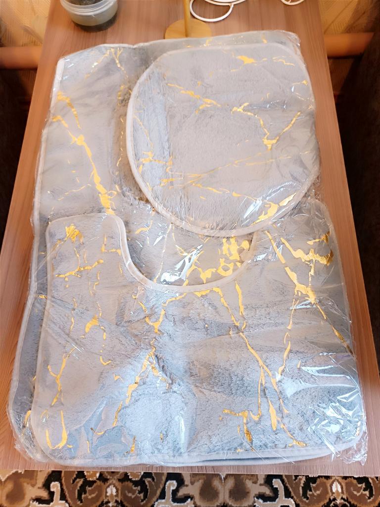 🚽🚾 РОСКОШНЫЙ КОМПЛЕКТ КОВРИКОВ ДЛЯ МАМИНОГО САНУЗЛА, ПОД МРАМОР С ЗОЛОТОМ 👍 🙋♂️ Добрый день, уважаемые читатели! Поскольку недавно в деревенском доме мы сделали ремонт почти везде, кроме ванной комнаты, то теперь настал и её черёд. И в процессе подготовки к ремонту санузла я задумался о будущем внешнем облике интерьера помещения. На Джум есть огромный выбор всяких штучек для ванной комнаты. Например, мягких, пушистых и красивых ковриков. 💁♂️ И вот в процессе оформления будущего интерьера встал важный выбор ковриков и шторки. Сама ванная комната будет выполнена в бело-голубых тонах, а вот акценты хотелось сделать и чуть яркими, но и одновременно с подходящим сочетанием цветов. Я решил, что вариант под мрамор с золотом будет просто идеален. Заказал и коврики, и шторку. ✈️ Комплект из трёх ковриков доставили за 28 дней, трек полностью отслеживался. Упаковано аккуратно и надёжно, дефектов или брака нет. Комплект очень понравился! Коврики имеют довольно высокий ворс, мягкий на ощупь, эластичный и приятный, создающий ощущение комфорта и теплоты. 100% полипропилен на качественной латексной основе делает коврики быстросохнущими, предотвращает появление плесени и неприятных запахов. 🕵️♂️ Края комплекта ковриков для ванны по периметру обработаны оверлоком, что предотвращает их распускание. Также латексная основа делает коврики противоскользящими, а это незаменимый аксессуар для ванной комнаты с точки зрения безопасности. Благодаря своему составу набор ковриков в ванную и туалет не накапливает влагу, имеет большой срок службы и отлично вписывается в любой интерьер. ☝️ Сами коврики сделаны очень качественно: плотный, мягкий ворс. Швы ровные, нитки нигде не торчат. Подложка (оборотная сторона) прорезинена, а потому не позволяет влаге пачкать полы. Края обработаны замечательно. В целом, внешне коврики очень качественные и красивые. Я уверен, что эти коврики идеально впишутся в интерьер нашей ванной комнаты. Выглядят аккуратно, стильно, и создают своеобразные яркие акценты. Рекомендую всем желающим!