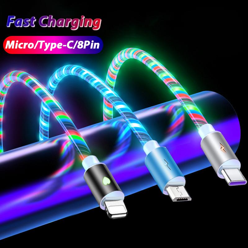 Светящийся зарядный кабель VAORLO Micro 8Pin 5A Type-C USB зарядное устройство Высокая совместимость для Android XiaoMi Huawei iphone 11 12 13 — купить товар онлайн с бесплатной доставкой по всему миру!