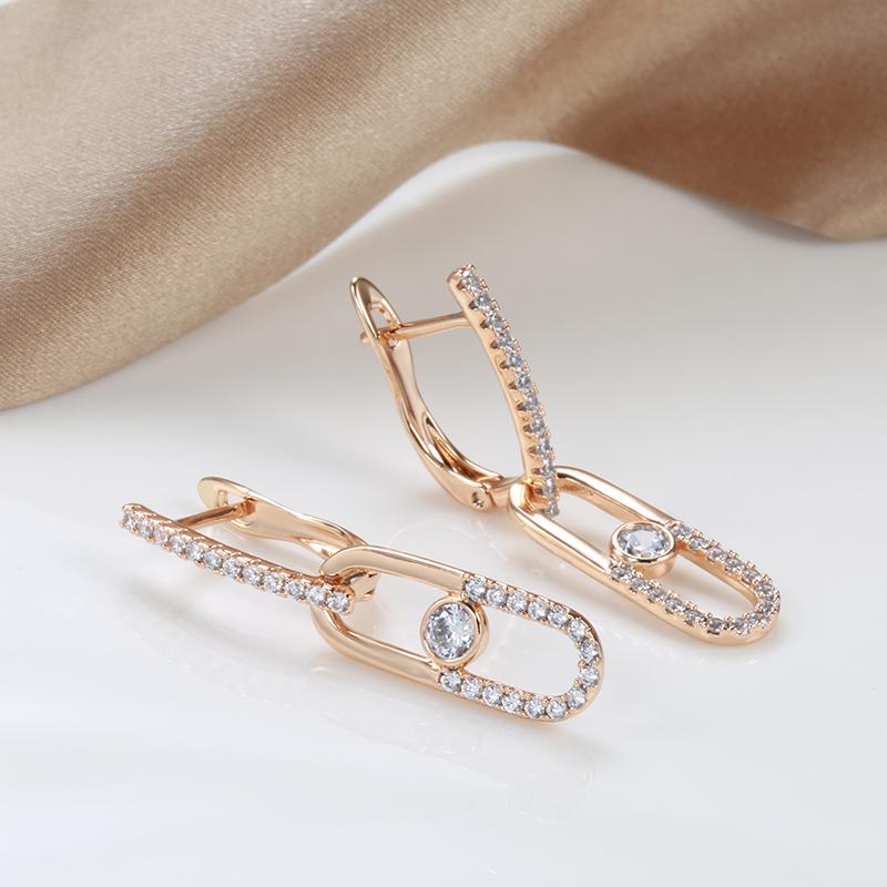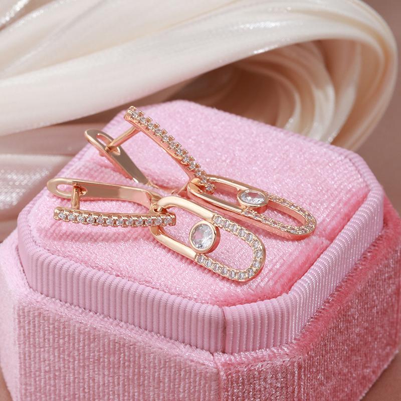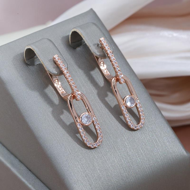 Модные длинные овальные серьги Kinel из розового золота с цирконом для женщин