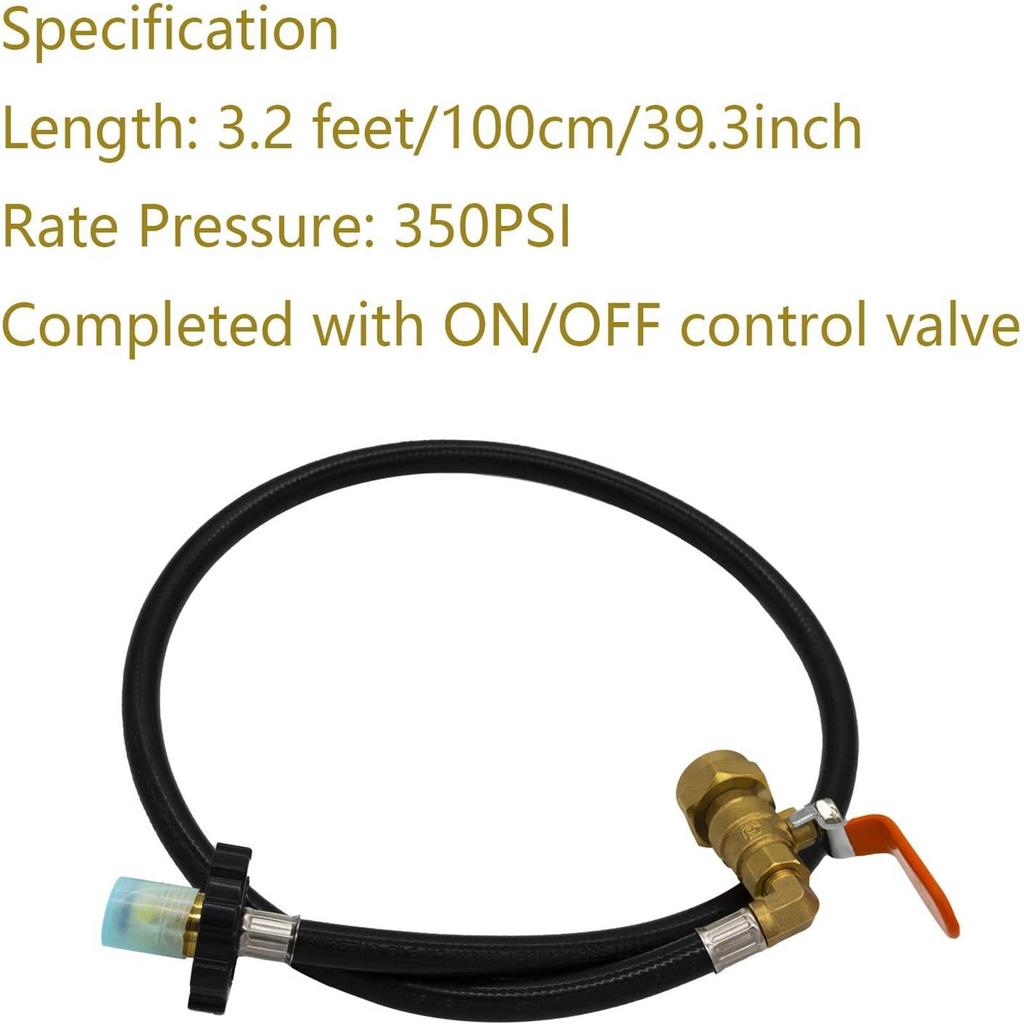 Шланг-адаптер для заправки пропана, удлинительный шланг для пропана, 39,3 дюйма Шланг для заправки пропана с контролем включения-выключения