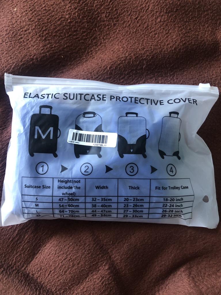 Доброго времени суток всем ! Заказала чехол для чемодана впервые. Получила посылку в срок. Пока не использовали и еще не успели померять. Фото приложу позже.