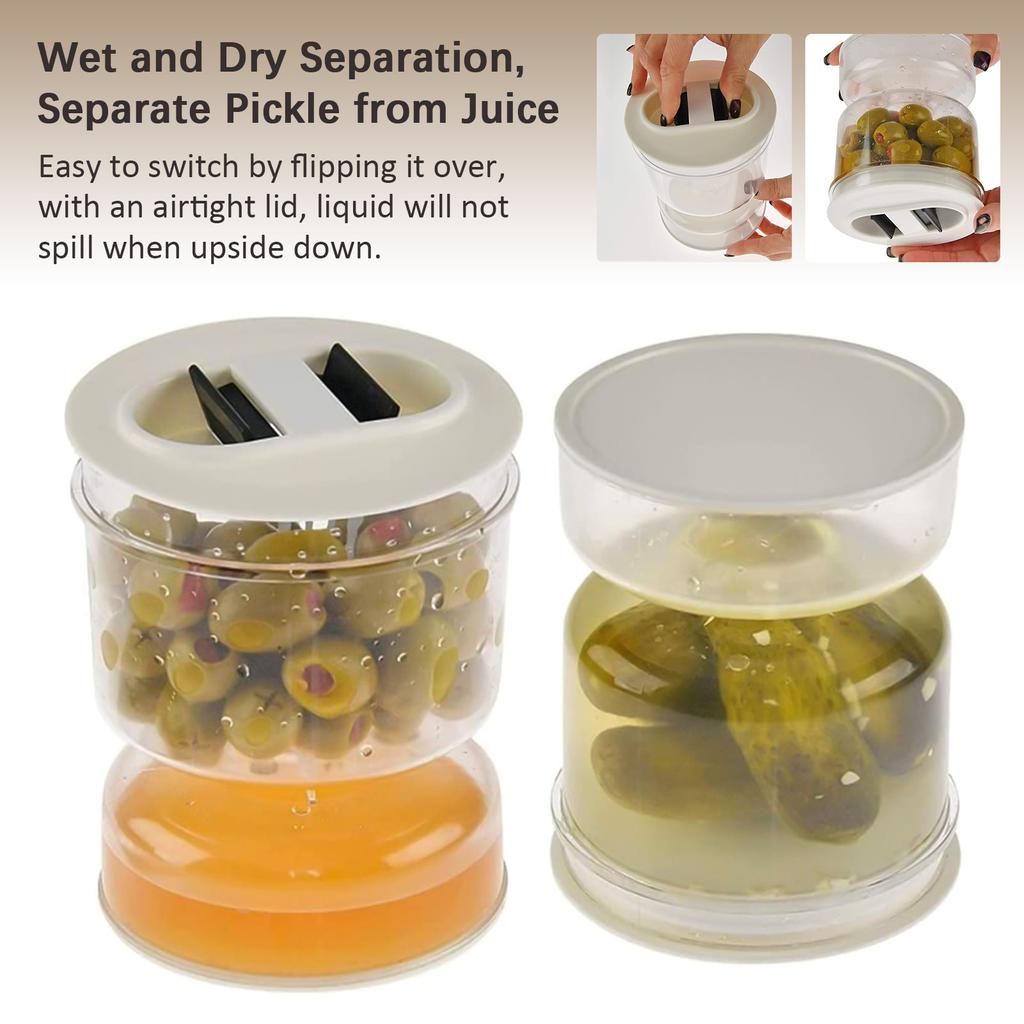 Банка для песочных часов для маринованных оливок, маринованного сока, сепаратор для влажной и сухой пищи, контейнер для пищевых продуктов с ситечком, откидная герметичная крышка