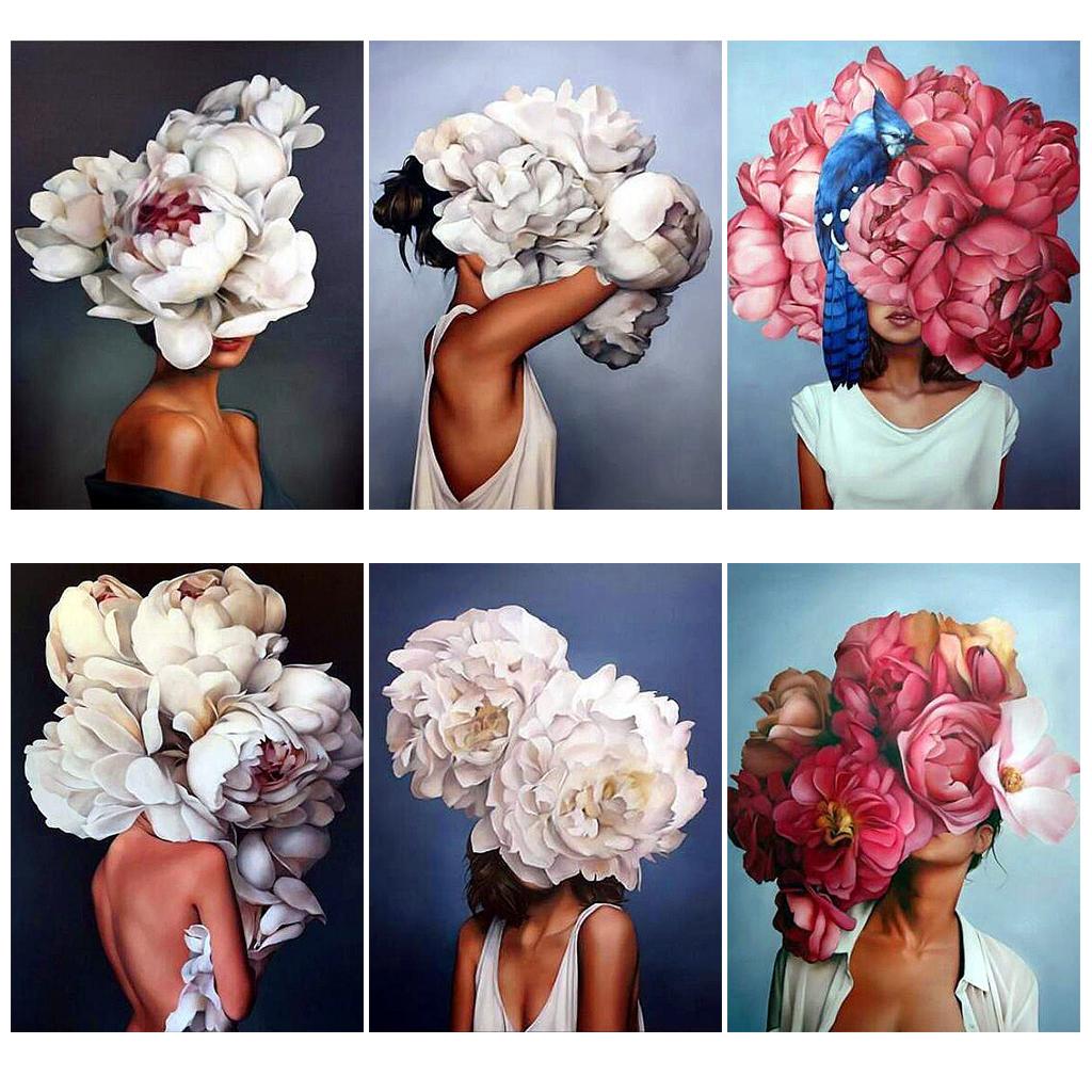 5d Diy алмазная живопись Красота Голова Цветочная Мозаика Художественная Живопись Круглая Алмазная Имитация Набор Для Вышивки Крестом Ремесла Домашнее Украшение