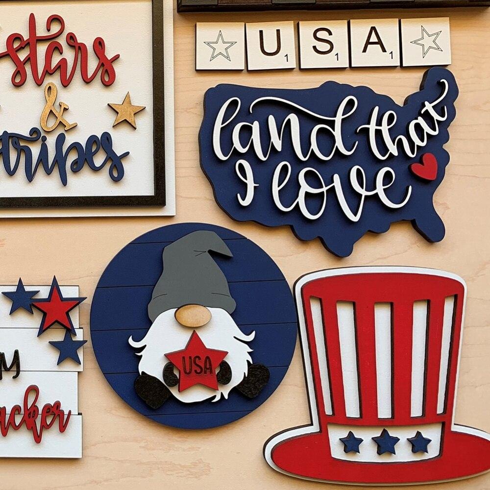 Набор из 8 шт./компл. Украшение для рабочего стола ко Дню независимости США, многоярусный поднос, патриотичный многоярусный поднос 4 июля, деревянный набор украшений