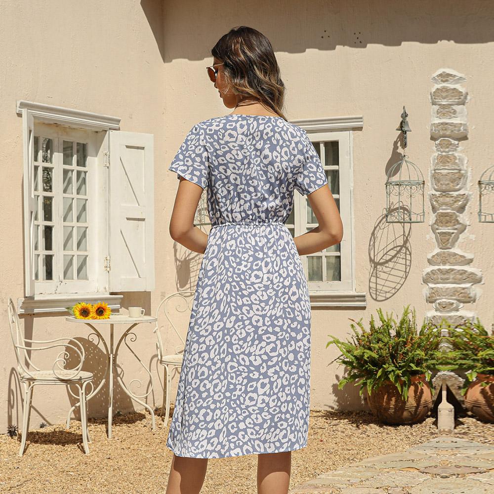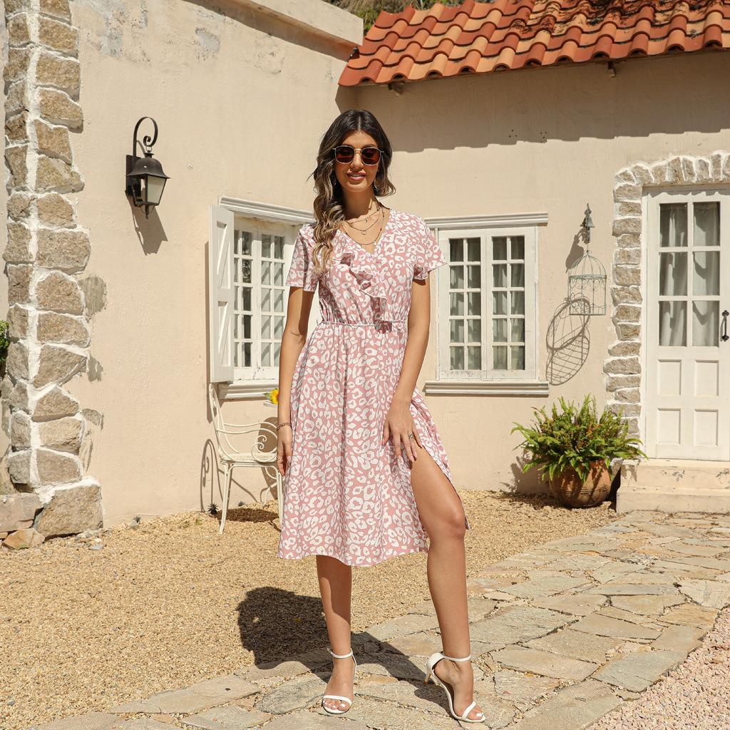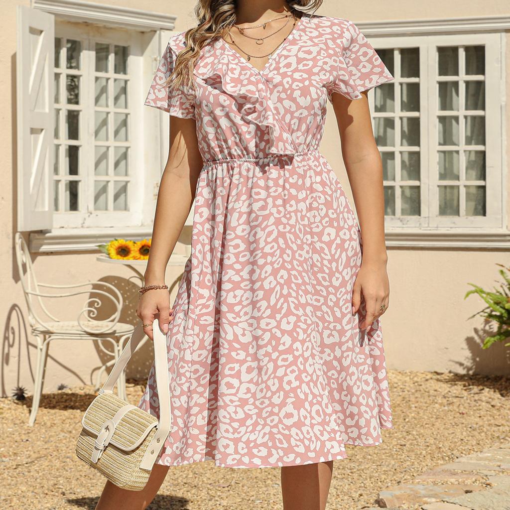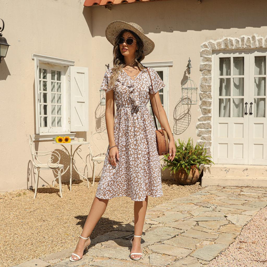 Летнее пляжное платье с рюшами и рюшами и леопардовым принтом, летним рукавом и высокой талией, S-XXL