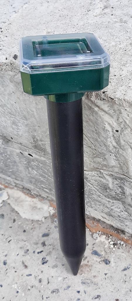Ультразвуковой отпугиватель на солнечных батареях 👍😁 Классная вещь для отпугивания грызунов и даже змей. Небольшой компактный , работает примерно на радиус 10 метров. Писчит и вибрирует в ножке., создавая вибрации в земле , грызунам это не нравится, проверено в течении 2х лет такими же приборами , нет ни мышей ни кротов , ни змей. Зарядка аккумуляторов через солнечную батарею . Срок эксплуатации примерно 2 -3 года , потом нужно менять аккумуляторы . Поэтому за эту цену проще покупать новый прибор 👌😊